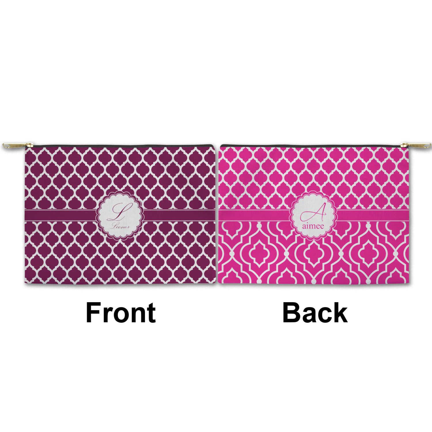 You can design both the front and the back of the pouch - same design, two complementary designs or two totally different designs - the choice is yours! We offer many different personalization styles i.e. name, name & initial, monograms - so the choice to personalize is also yours.