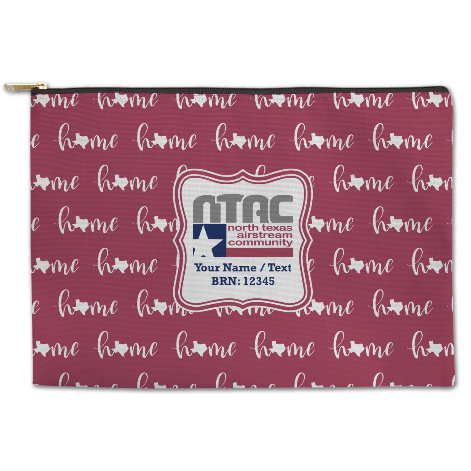 Our zippered pouches are available in two sizes - small: approx 8.5W"x6H and large: approx 12.5Wx8.5H. The pouches are made from a soft & durable canvas fabric that is printed on the outside with your design; the inside has a fused black lining. The printed canvas fabric is then cut and the pouches are sewn right here in the USA. The zipper itself is gold in color and has a round hook.