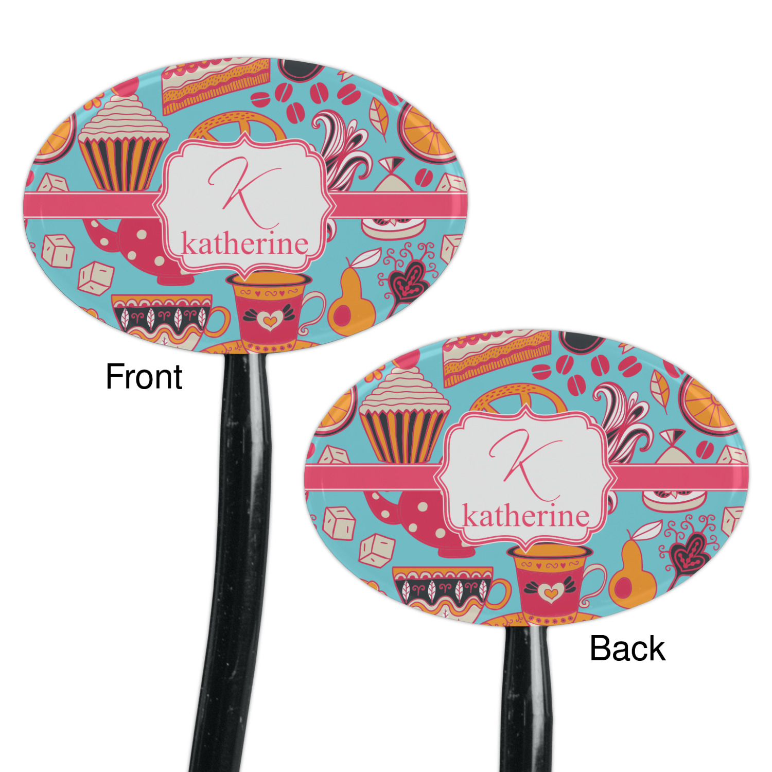 Desserts Designs for 7" Oval Plastic Stir Sticks - Black - Double-Sided
