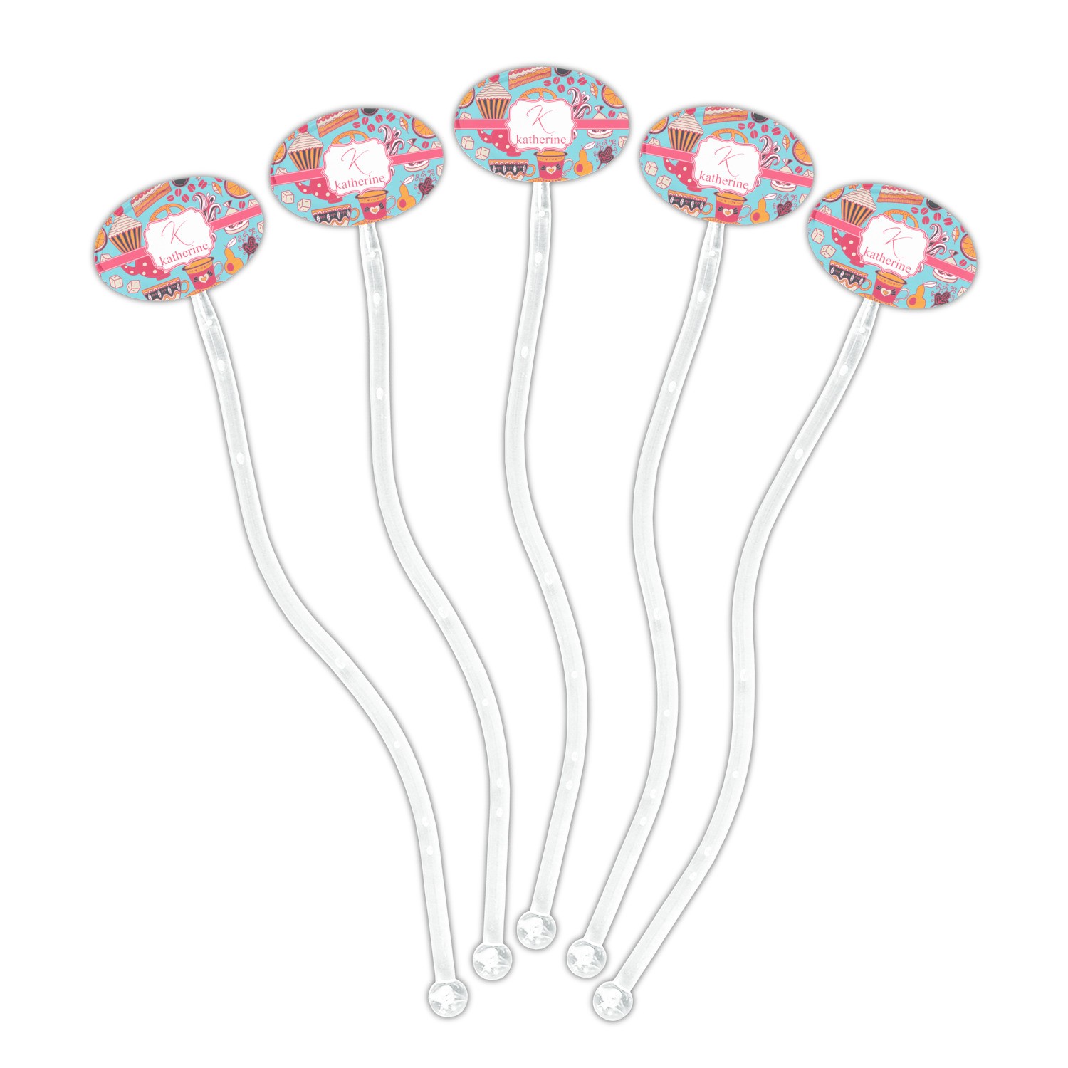 Desserts Designs for 7" Oval Plastic Stir Sticks - Clear