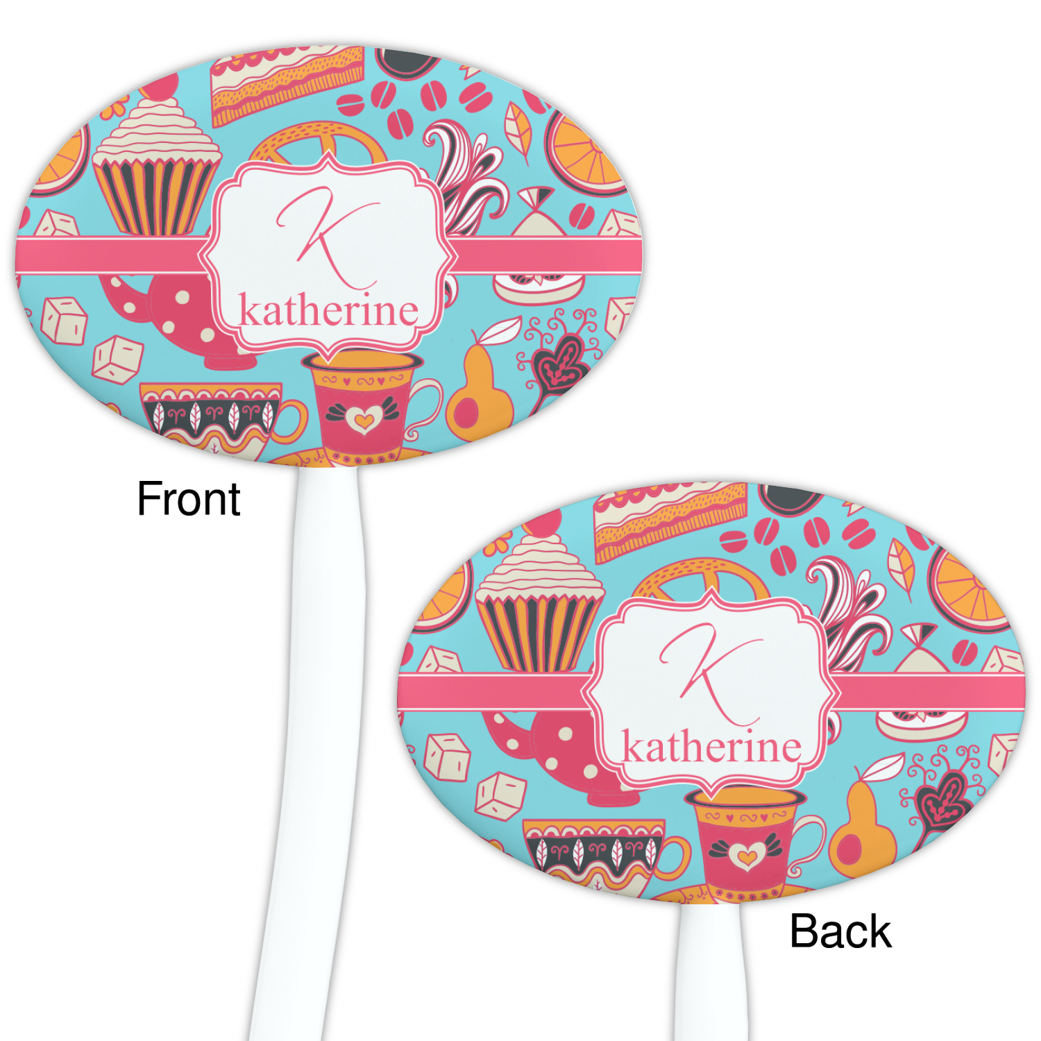 Desserts Designs for 7" Oval Plastic Stir Sticks - White - Double-Sided