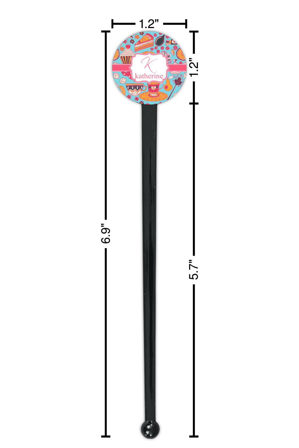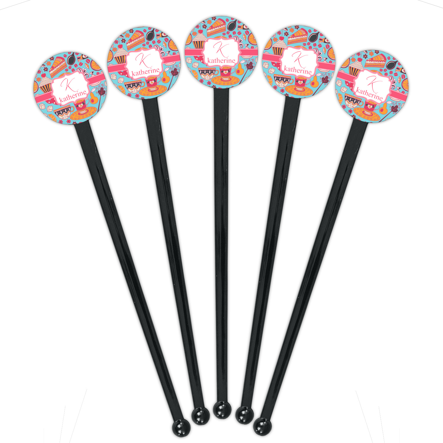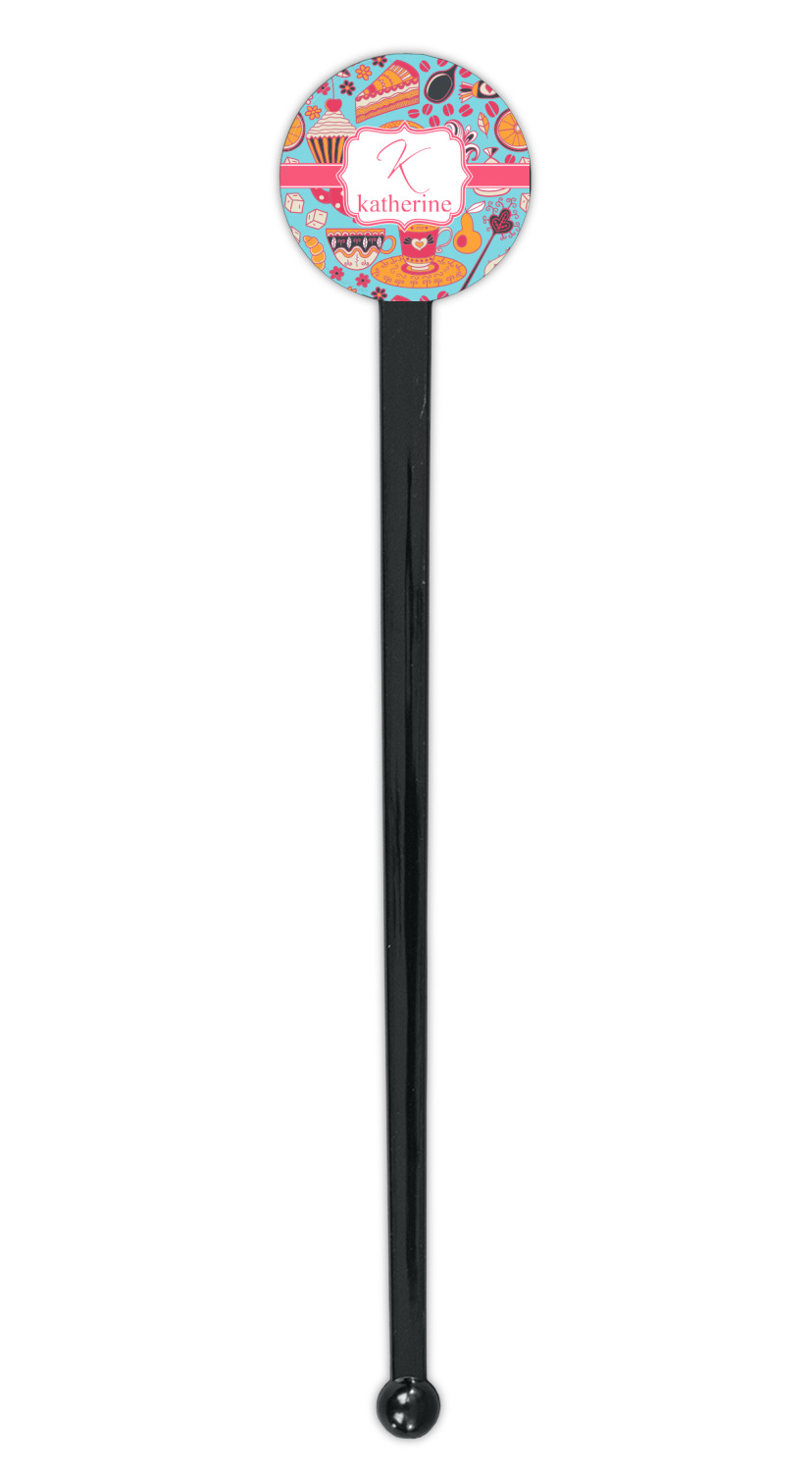 Desserts Designs for 7" Round Plastic Stir Sticks - Black - Double-Sided