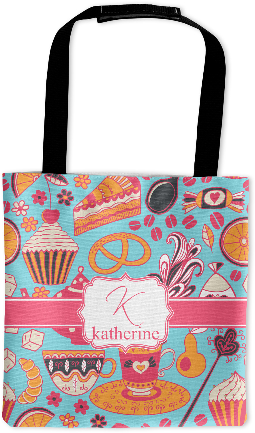 Every woman knows, brunch is vital to happiness. And what's brunch without coffee and cupcakes and fruit? This upbeat design features all these beloved ingredients in bright oranges and pinks, set on a teal background.
