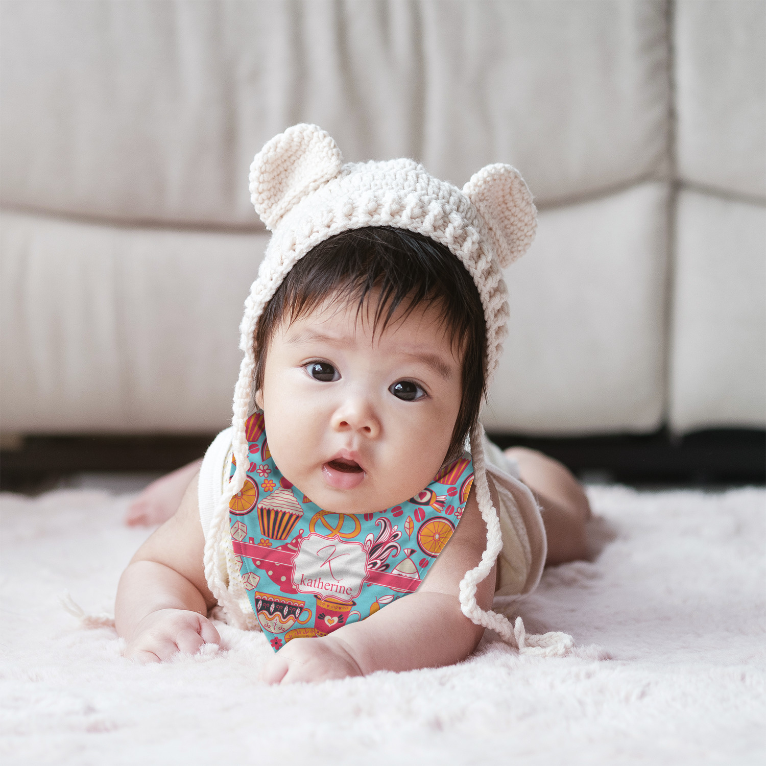 Combine this toddler bib with a variety of our other baby products, such as burp cloths, baby blankets, and baby onesies, to make a delightful baby shower gift! Or, browse from our selection of products in our Baby and Toddler section for more gifts for your own child! Customize some kid's cutlery, snack containers, or a sippy cup to make mealtime more enjoyable!