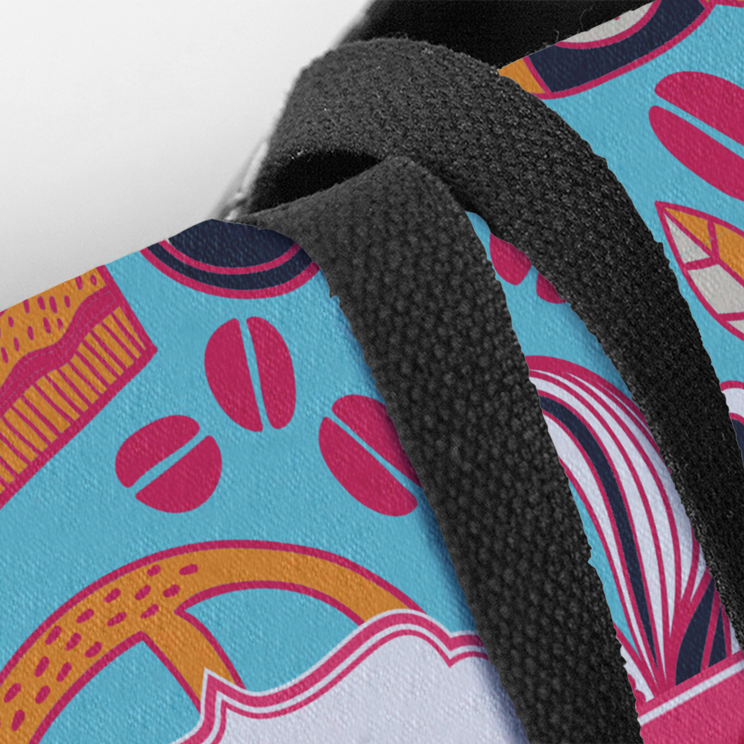 The totes are made from a sturdy canvas material on the outside and are lined with a black poly cotton lining. The beach totes have an approx. 28" black woven handles.