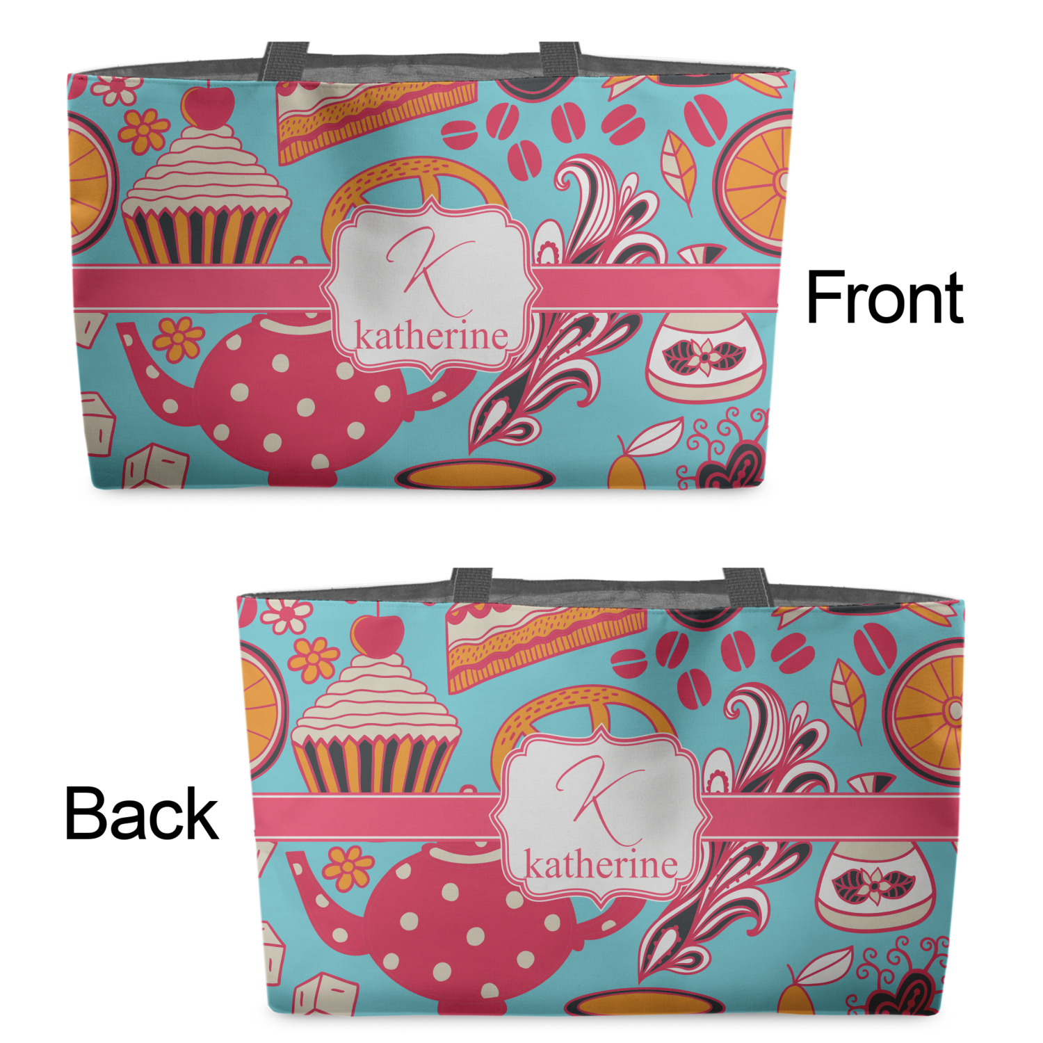 You can design the totes with a design on the front and another one on the back. The two designs can be identical or completely different. The choice is yours.