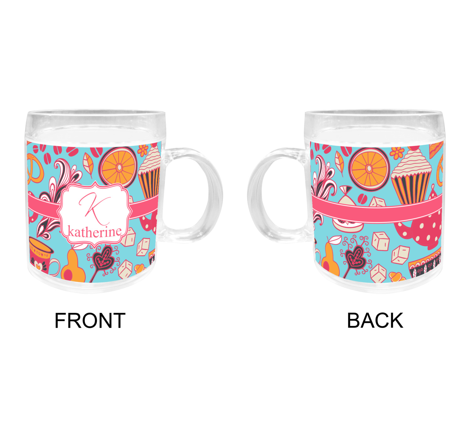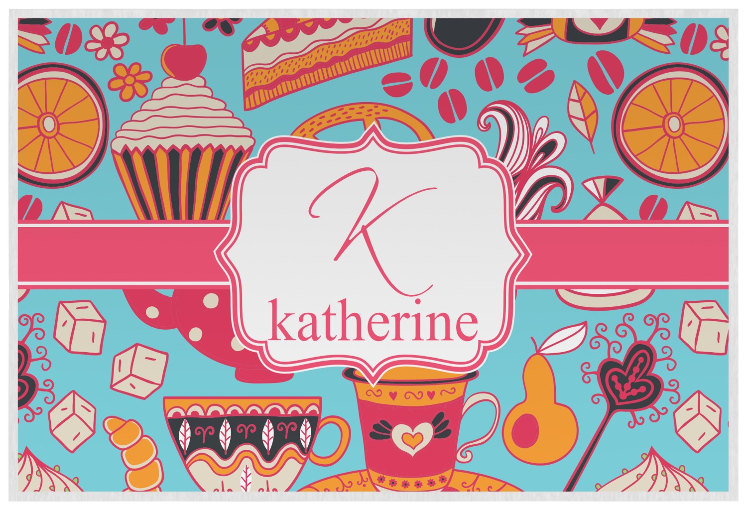 Every woman knows, brunch is vital to happiness. And what's brunch without coffee and cupcakes and fruit? This upbeat design features all these beloved ingredients in bright oranges and pinks, set on a teal background.