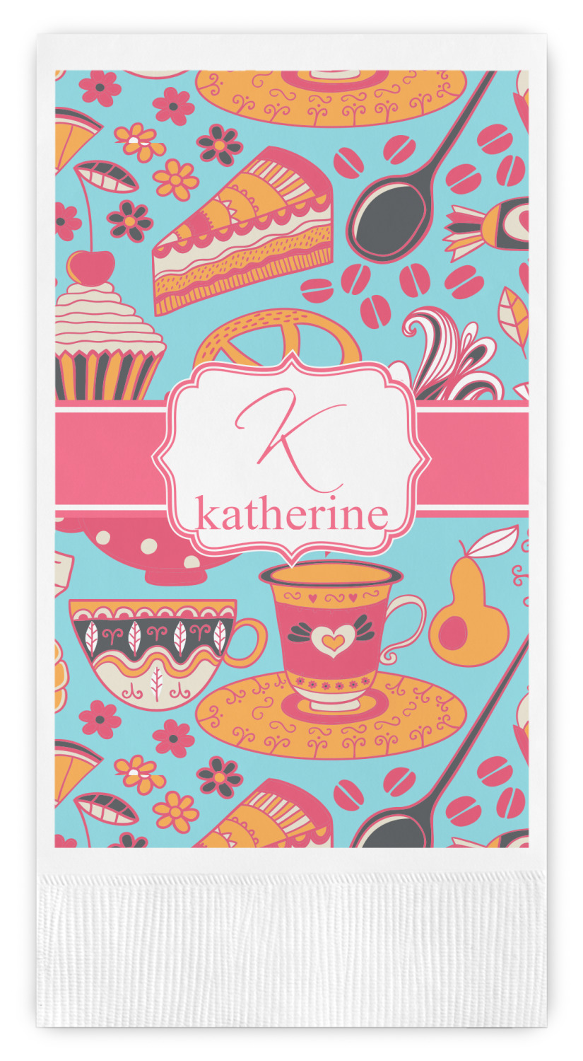 Every woman knows, brunch is vital to happiness. And what's brunch without coffee and cupcakes and fruit? This upbeat design features all these beloved ingredients in bright oranges and pinks, set on a teal background.