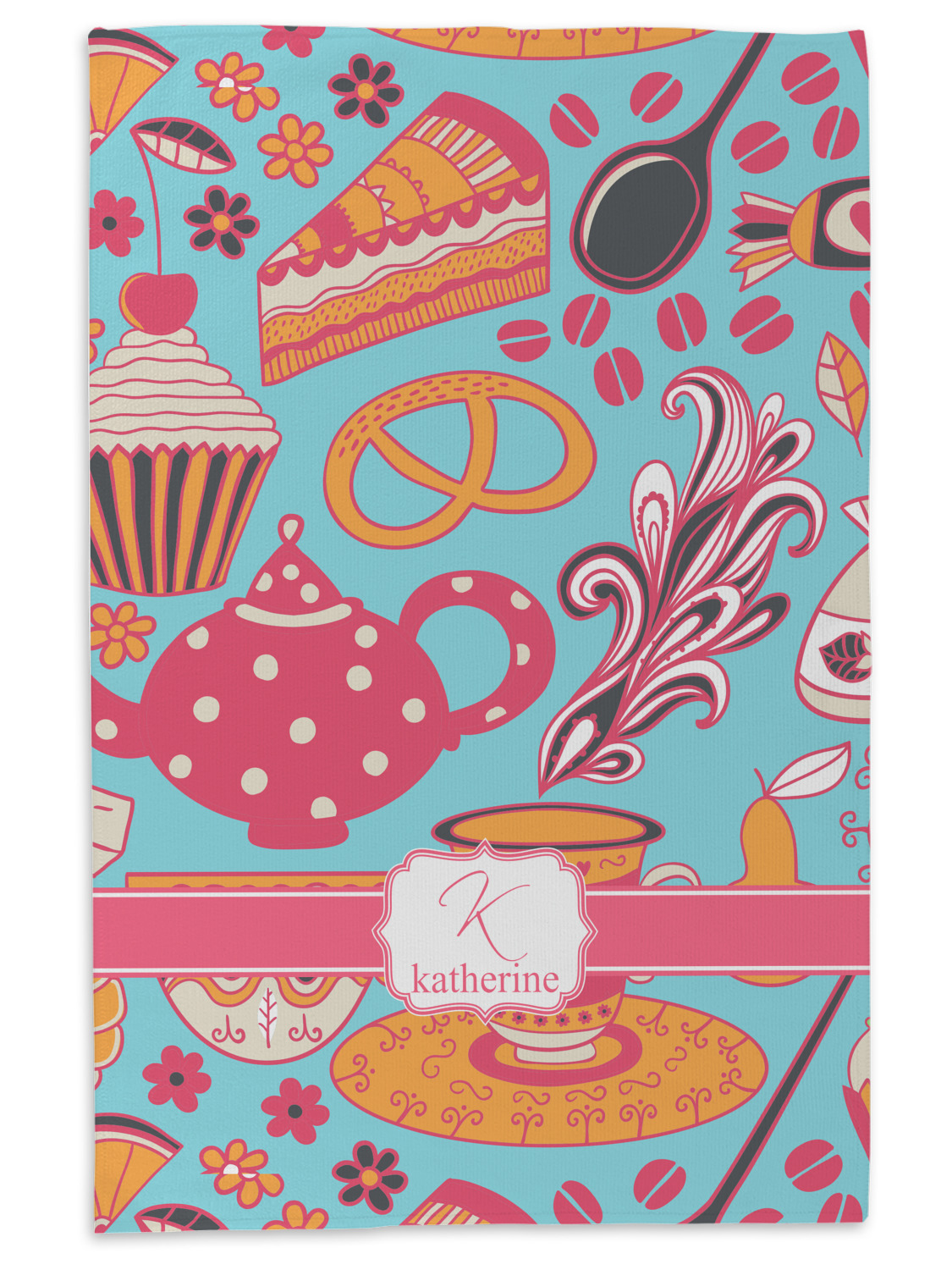 Every woman knows, brunch is vital to happiness. And what's brunch without coffee and cupcakes and fruit? This upbeat design features all these beloved ingredients in bright oranges and pinks, set on a teal background.