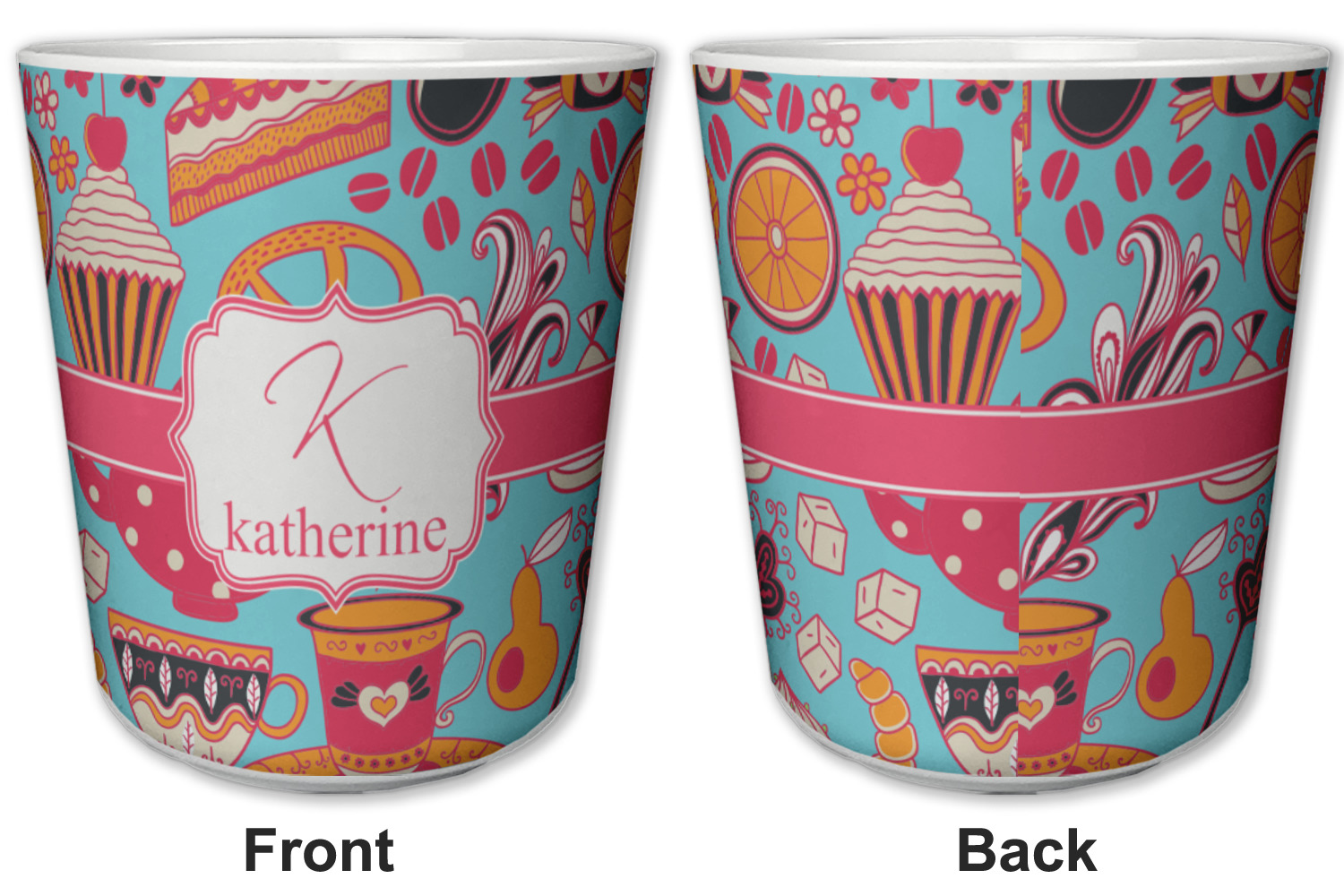 Made from a durable plastic, these tumbler cups are strong enough to withstand daily use and are perfect for young children. Each of these personalized plastic cups holds 6 ounces and measure at approximately 3" x 3" x 3.25". Place them in the bathroom as a rinsing cup, or give them to your kids during mealtimes. These 6 oz. plastic cups are BPA free, microwave and dishwasher safe, for your convenience. Your personalized design is displayed across the entire outside of this cup, while the inside is white in color to make your customization really stand out.