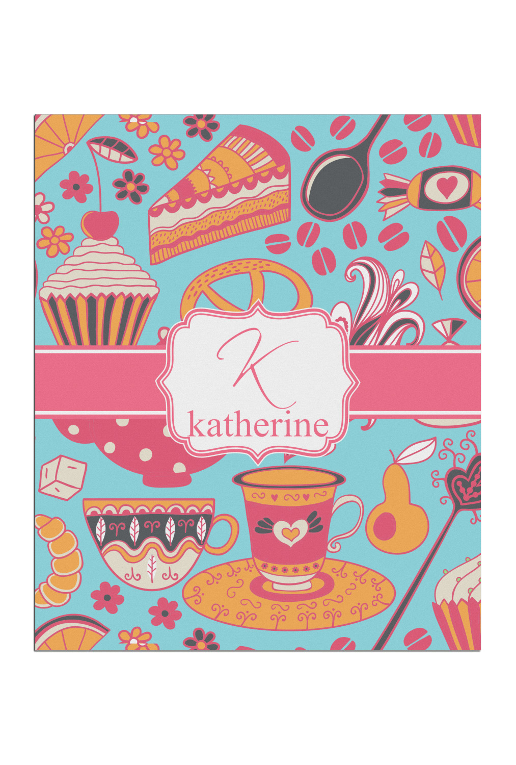 Every woman knows, brunch is vital to happiness. And what's brunch without coffee and cupcakes and fruit? This upbeat design features all these beloved ingredients in bright oranges and pinks, set on a teal background.