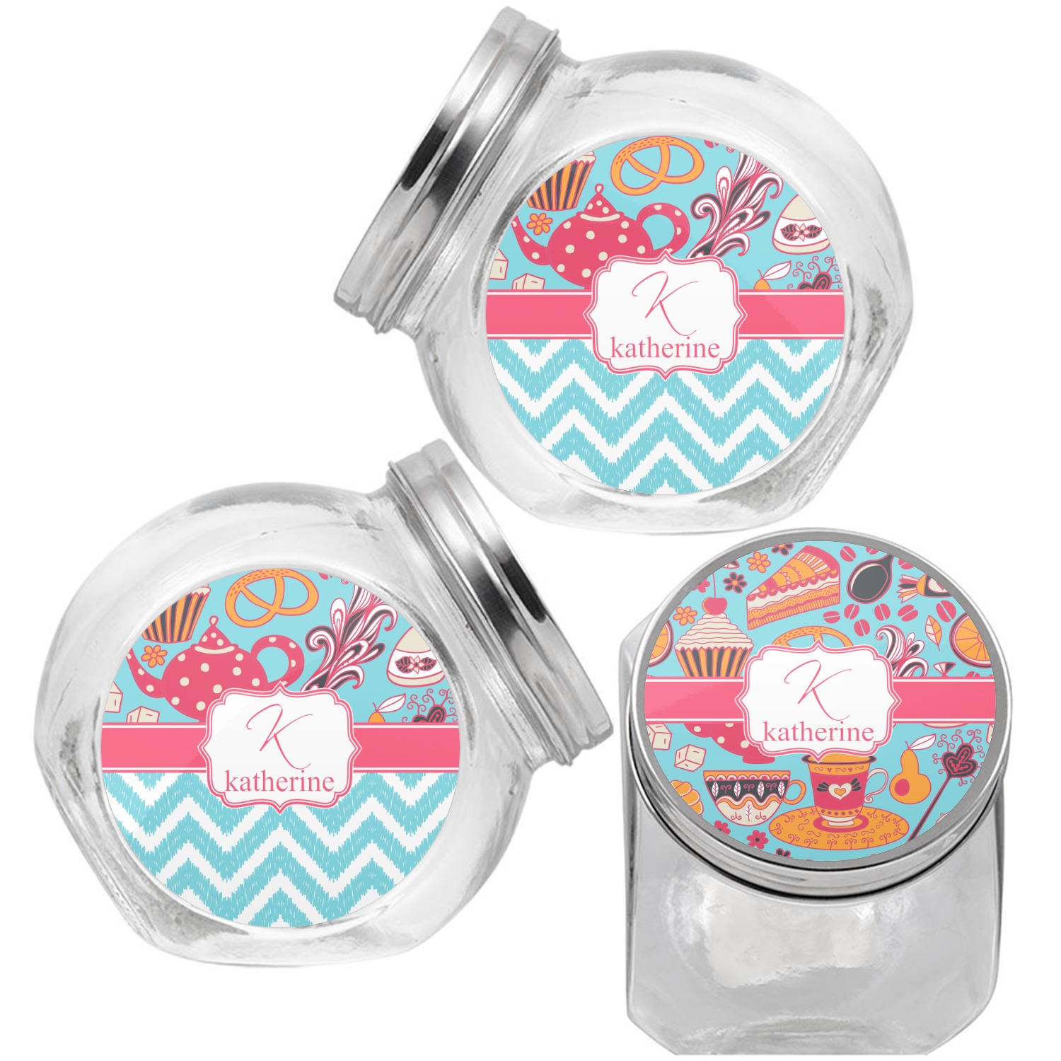 This treat jar is an excellent way to store treats for your favorite canine or feline. Moreover, their delicate, classy appearance makes them a tasteful addition to your countertop's décor. Crafted from clear glass, its unique construction and silver metal, screw-on lid allows for quick and easy access. Three, permanent, vinyl stickers are applied to both sides of the jar and lid, presenting your personalized design. The base of this glass, dog treat jar is 3.4" x 4.75", and the jar stands at 5" tall. Though on the smaller side, this jar is best suited for smaller treats or training treats.