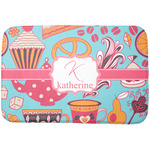 Every woman knows, brunch is vital to happiness. And what's brunch without coffee and cupcakes and fruit? This upbeat design features all these beloved ingredients in bright oranges and pinks, set on a teal background.