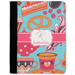 Every woman knows, brunch is vital to happiness. And what's brunch without coffee and cupcakes and fruit? This upbeat design features all these beloved ingredients in bright oranges and pinks, set on a teal background.