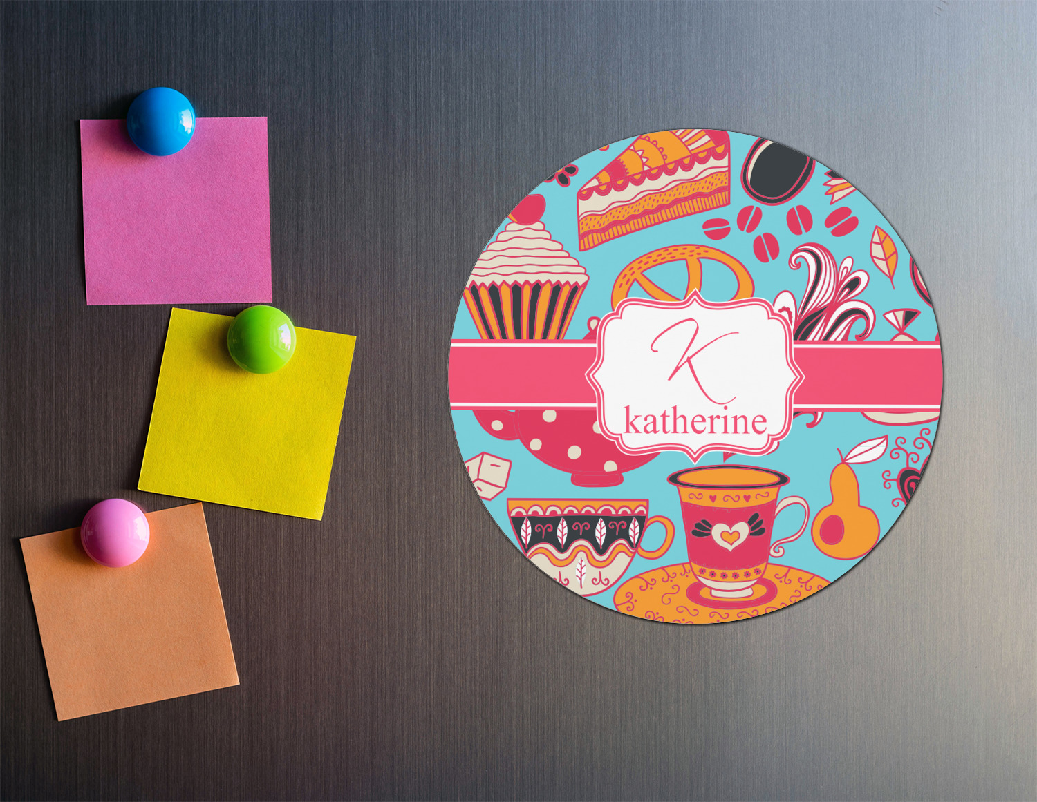Get rid of all those unslightly magnets you've gathered from food delivery places and jazz up your fridge with our personalized round magnets. If you're looking for a small gift with a big bang you've found them!! With the designs and colors from our collections you are sure to find one that fits anyone's personality.