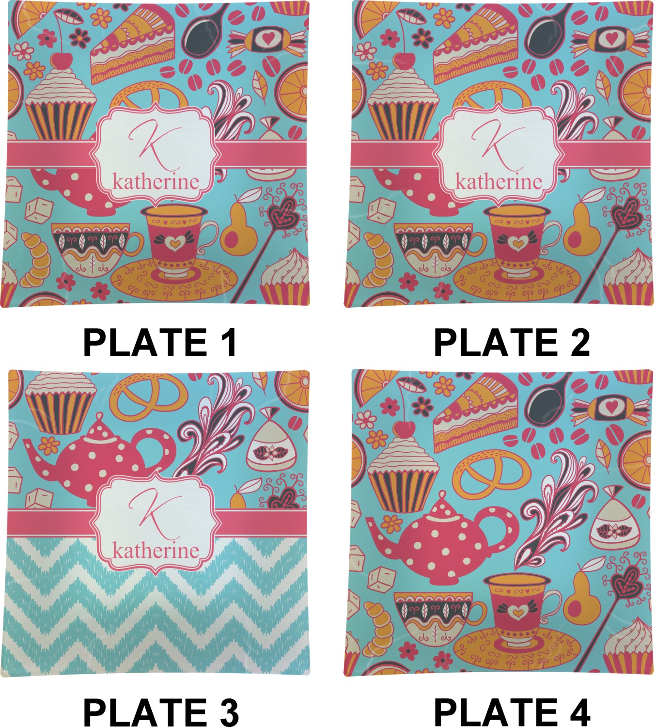 Desserts Designs for Glass Square Lunch / Dinner Plates 9.5" - Set of 4