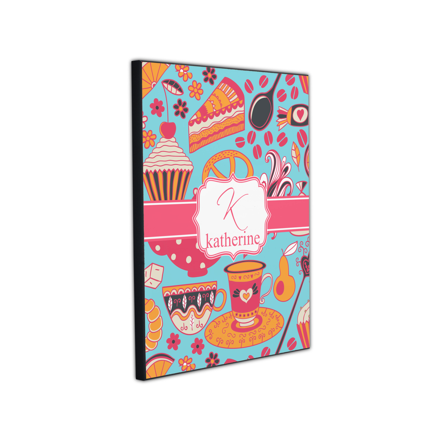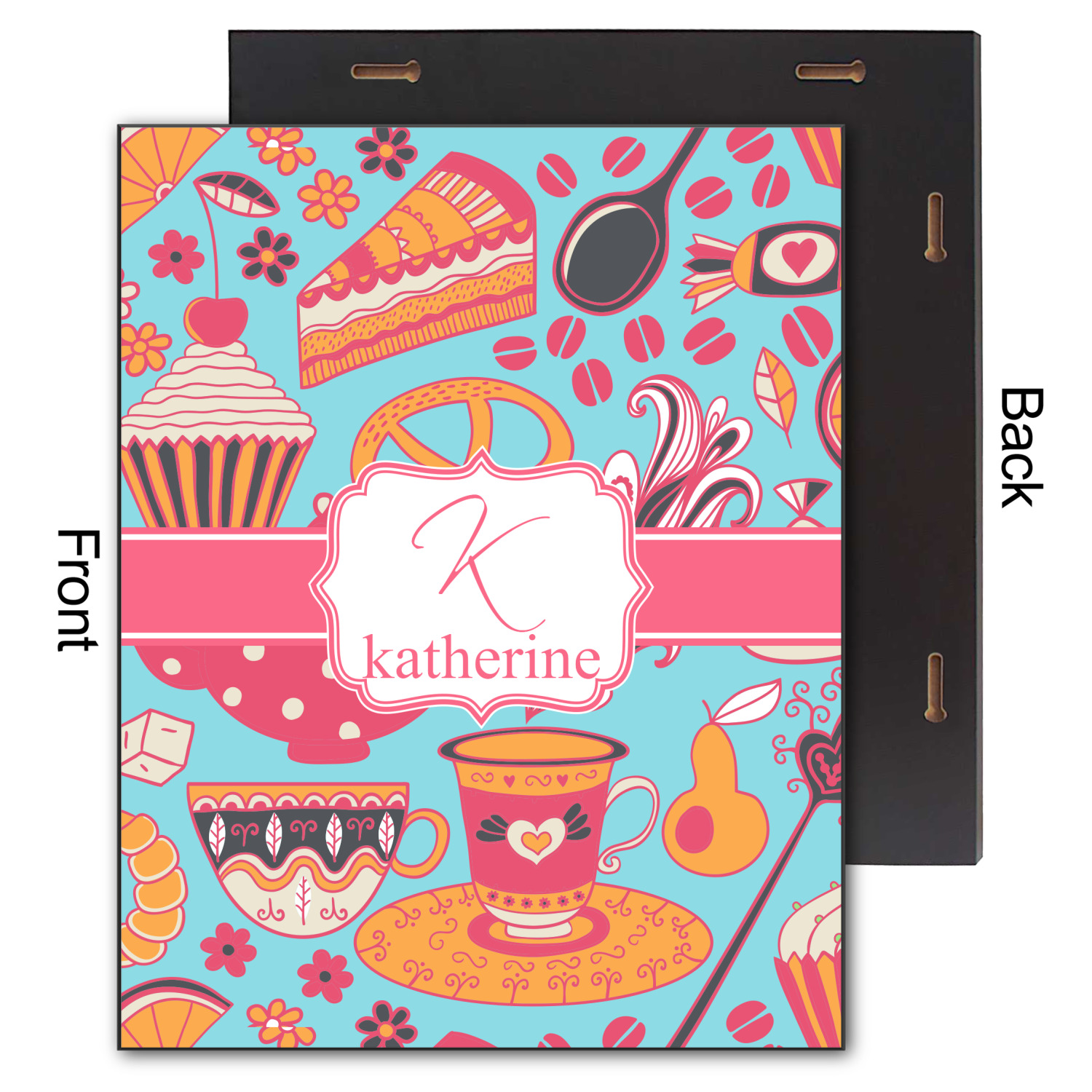 Every woman knows, brunch is vital to happiness. And what's brunch without coffee and cupcakes and fruit? This upbeat design features all these beloved ingredients in bright oranges and pinks, set on a teal background.