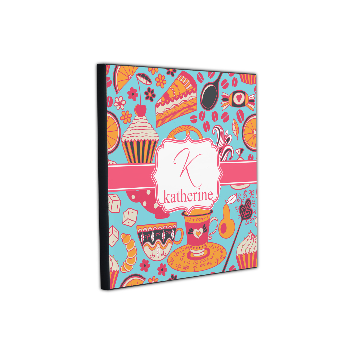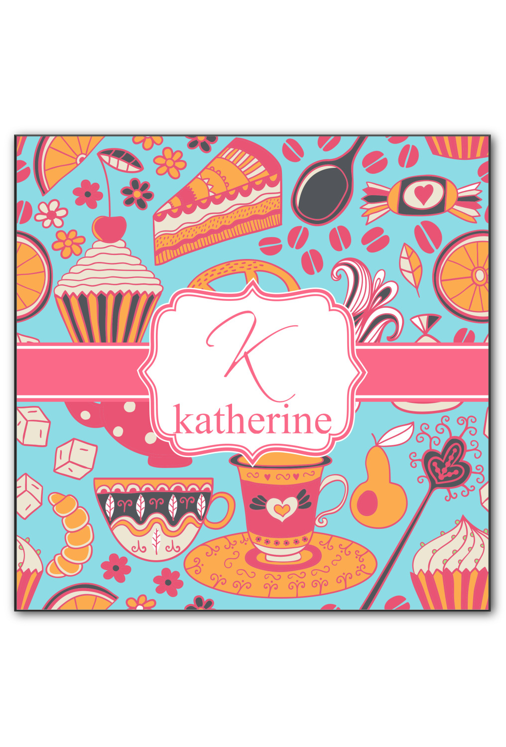 Every woman knows, brunch is vital to happiness. And what's brunch without coffee and cupcakes and fruit? This upbeat design features all these beloved ingredients in bright oranges and pinks, set on a teal background.
