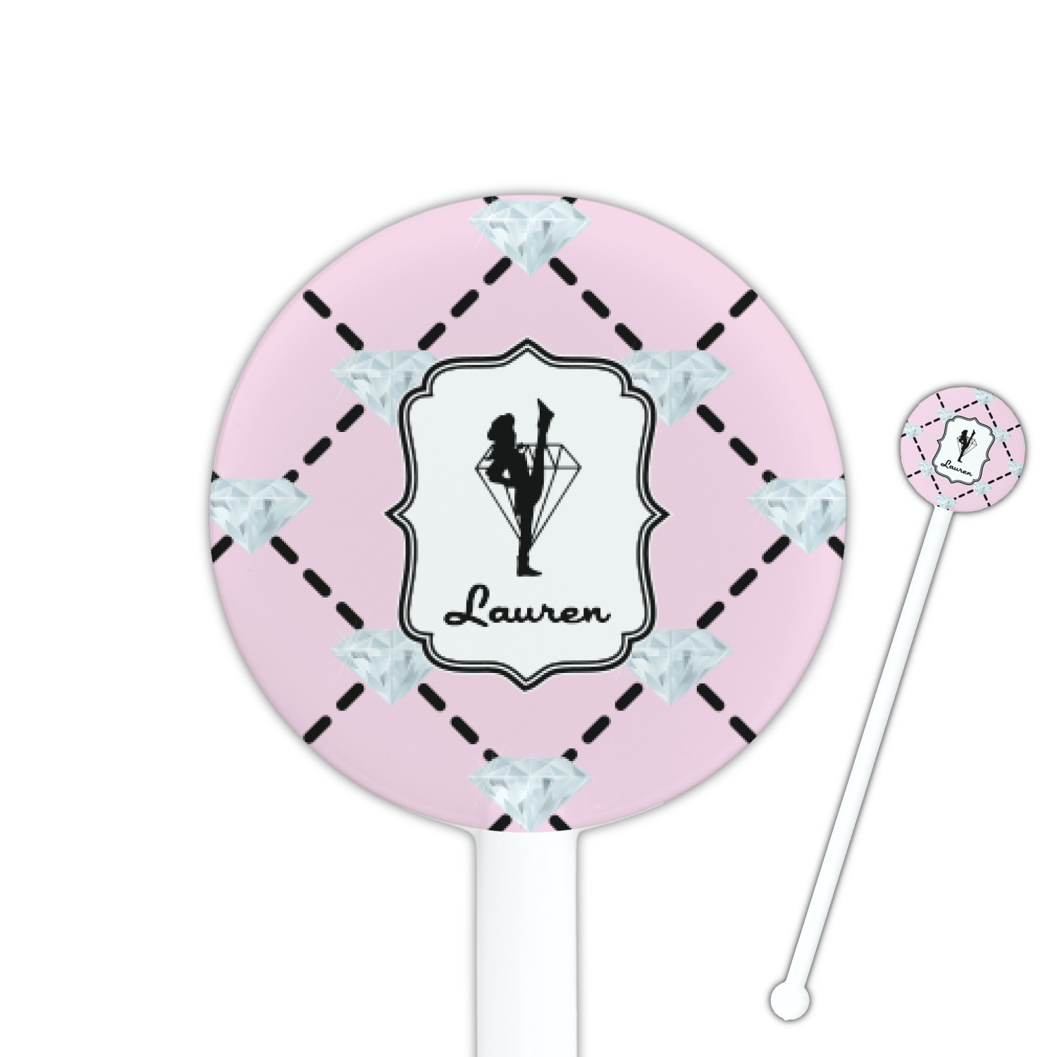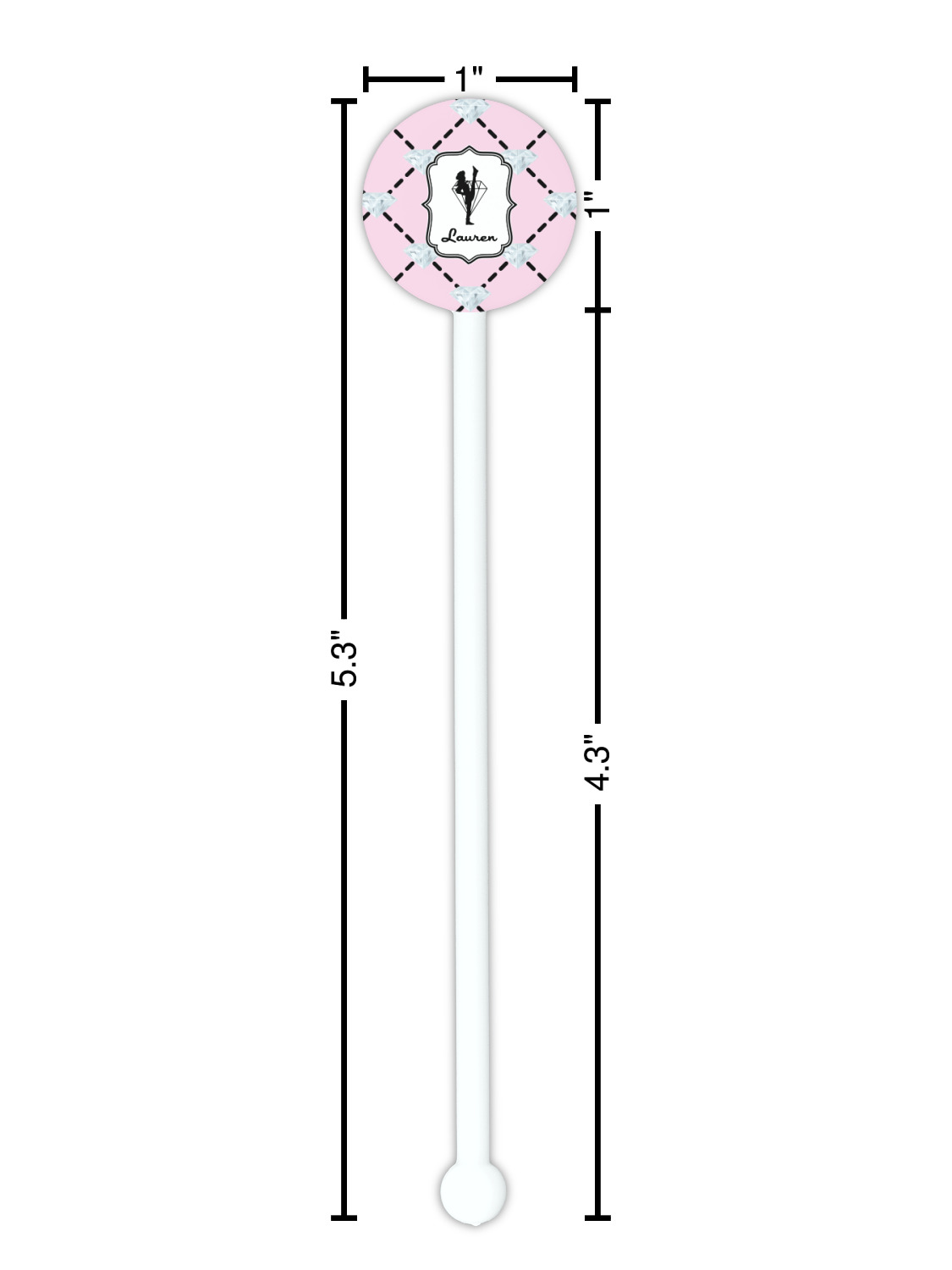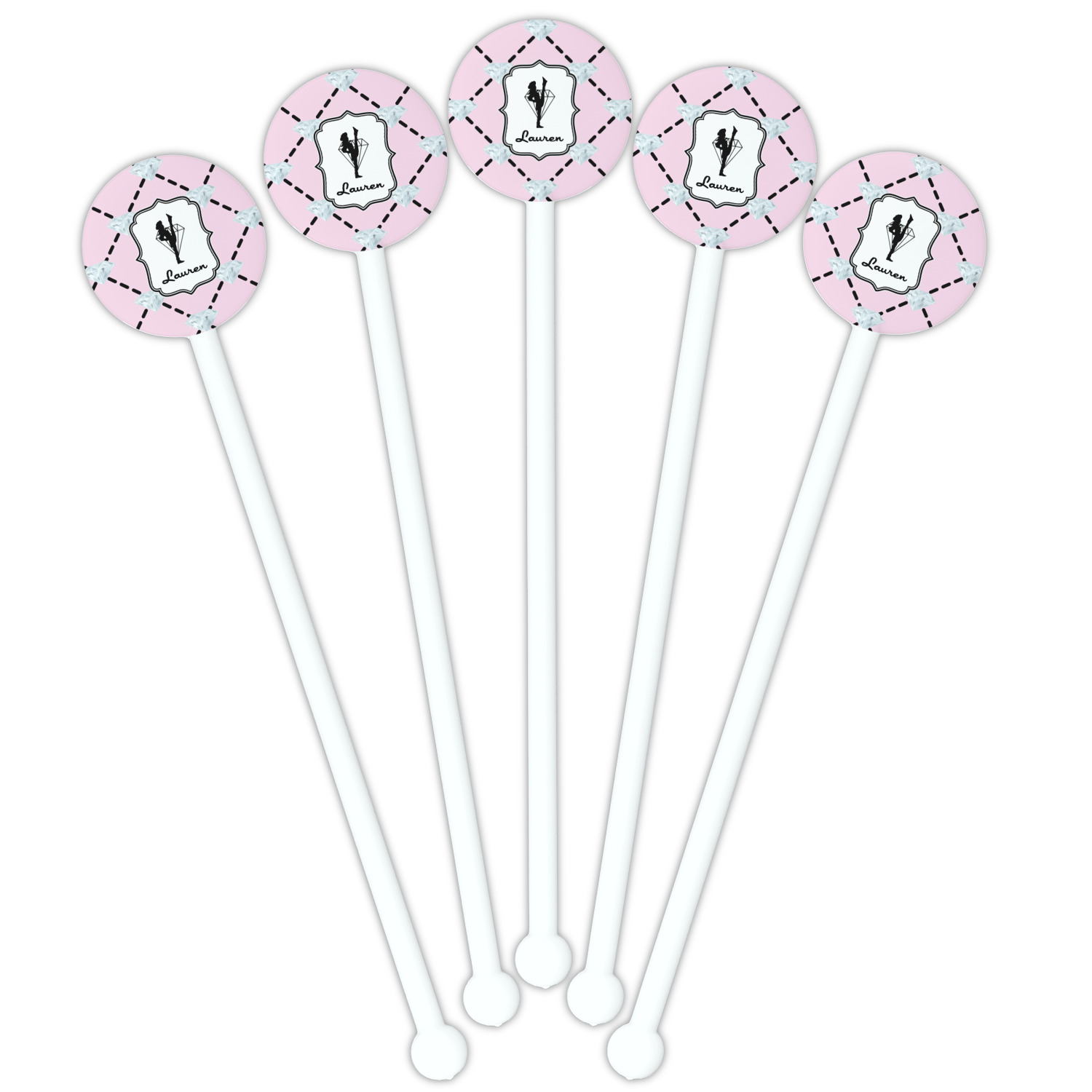 Diamond Designs for 5.5" Round Plastic Stir Sticks - White - Single-Sided