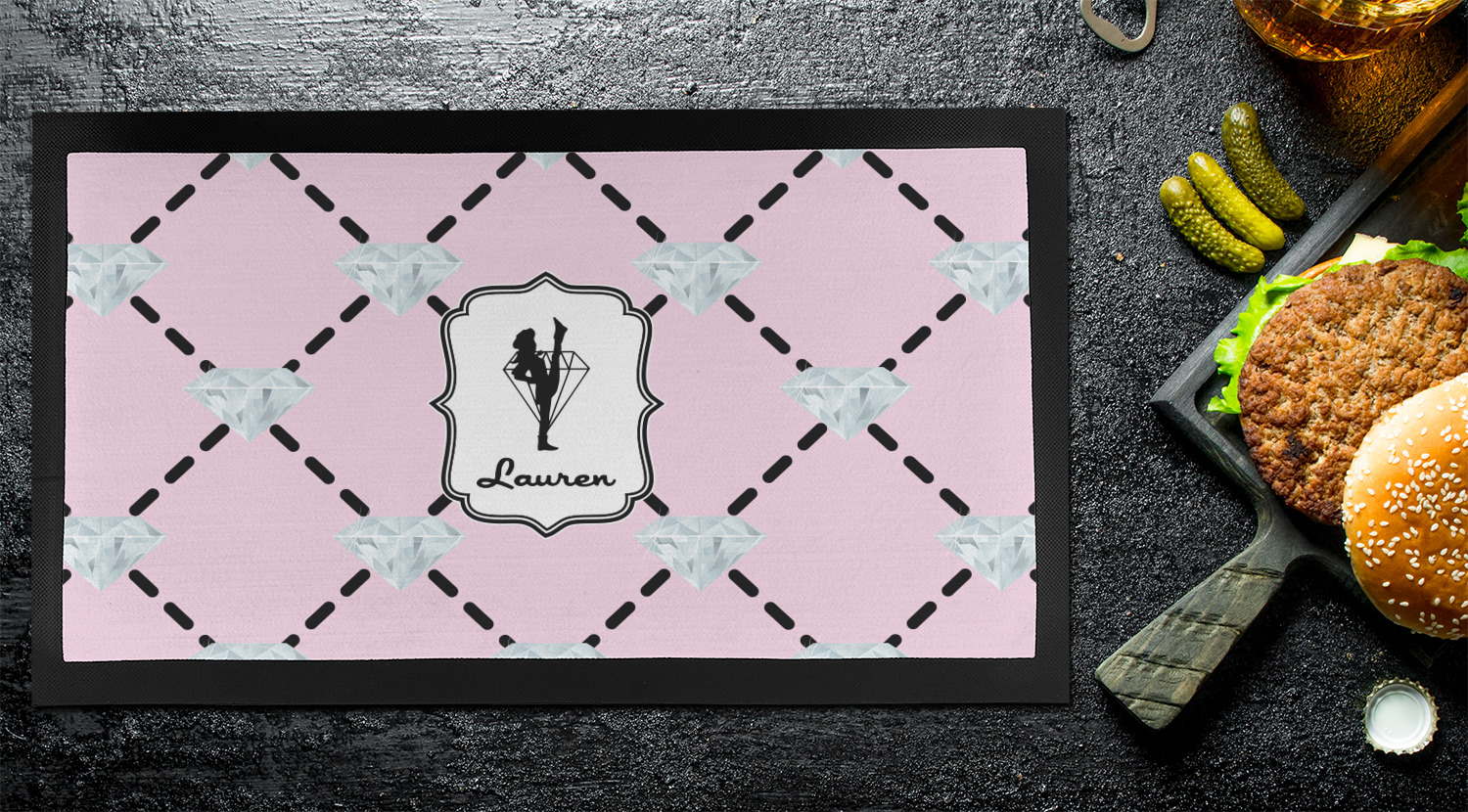 A beautiful decorative label showcases the silhouette of a dancer set inside a diamond personalized with the Diamond Drill team member's name.