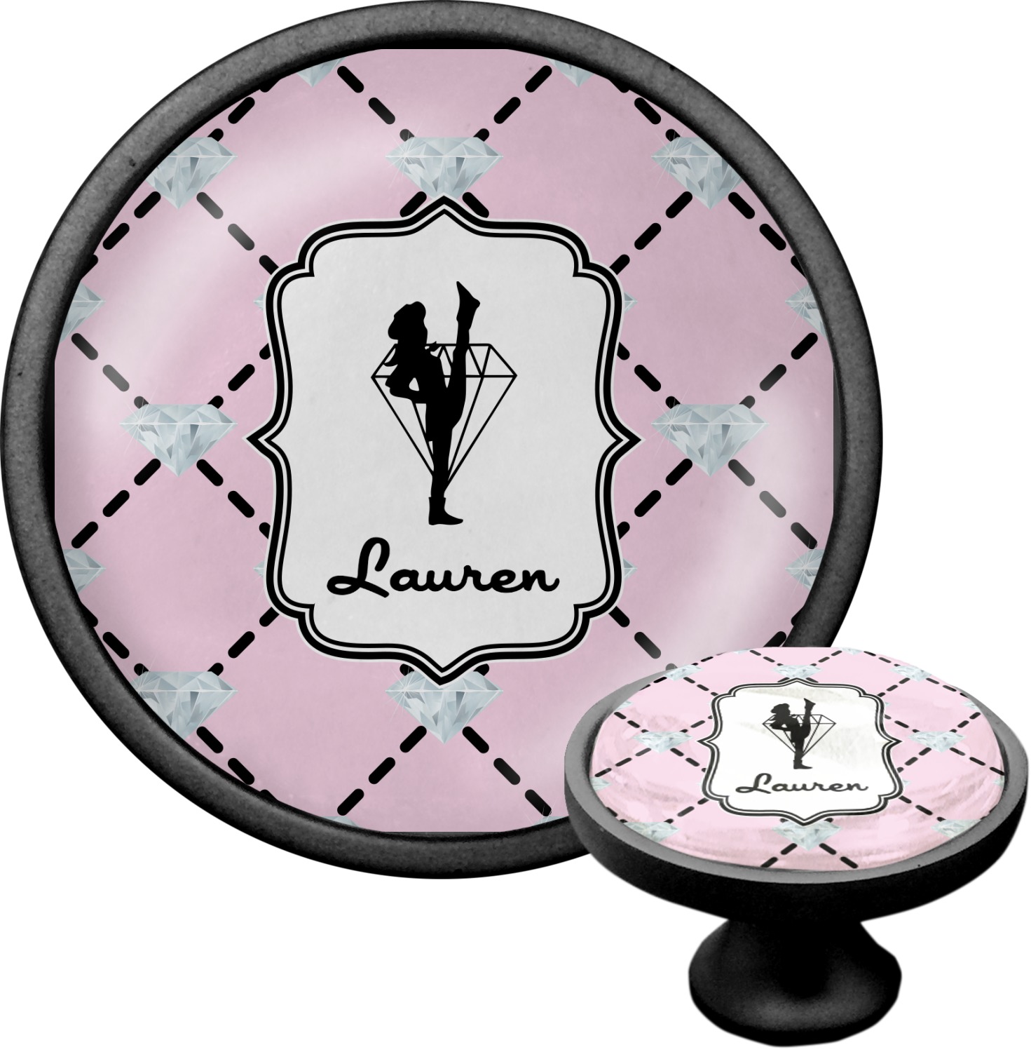 A beautiful decorative label showcases the silhouette of a dancer set inside a diamond personalized with the Diamond Drill team member's name.