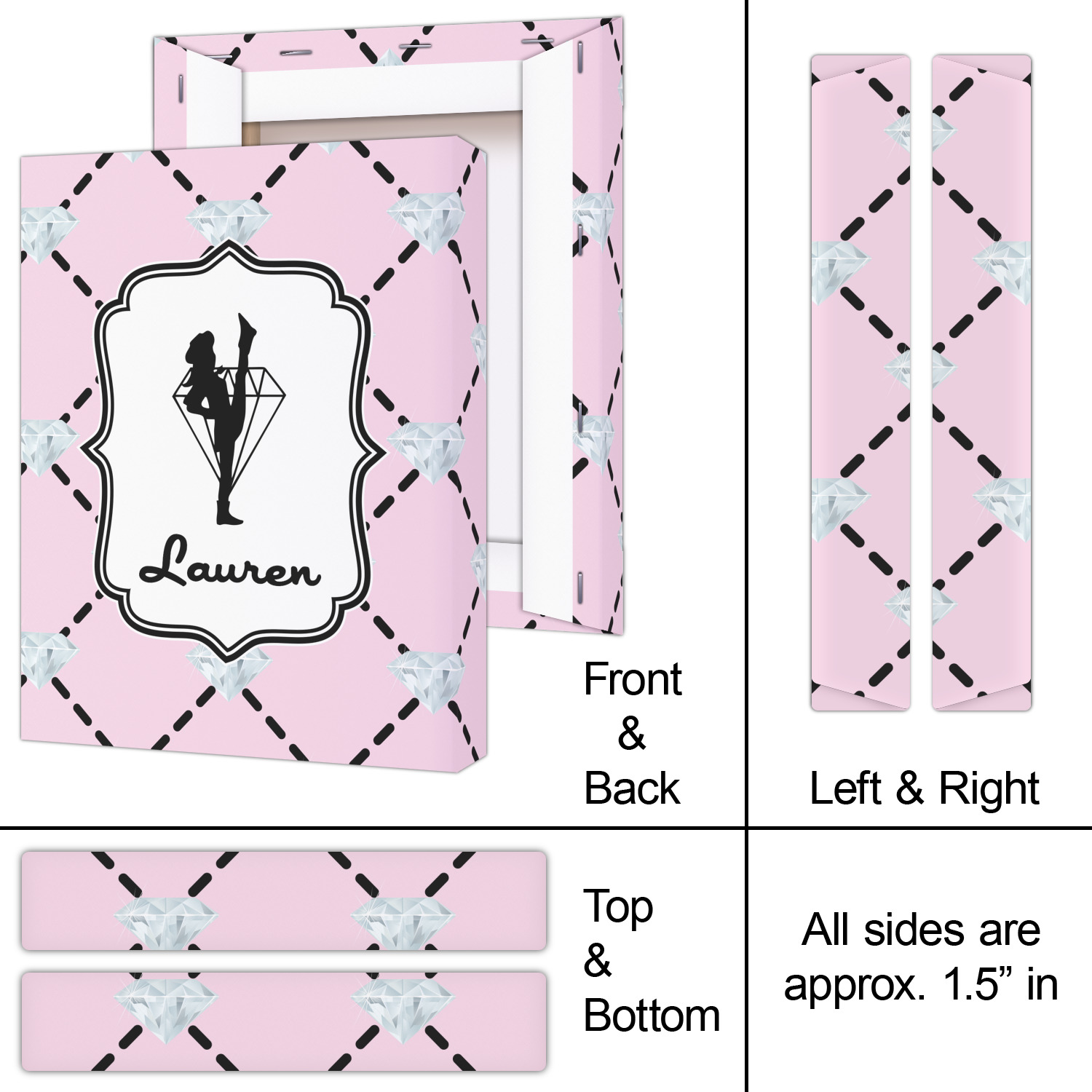A beautiful decorative label showcases the silhouette of a dancer set inside a diamond personalized with the Diamond Drill team member's name.
