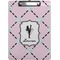 These custom clipboards are made from a strong hardboard and are coated with a glossy finish that accentuates the colors of your design. Alongside a retractable hook at its top, these decorative clipboards also feature sturdy clips to secure several sheets of paper. We sell these clipboards in two separate sizes. Our letter size measures at 12.5" L x 9" W, while our legal clipboard is approximately 15.5" L x 9" W. On both models, your personalization is printed on both sides of this clipboard and can be customized individually.