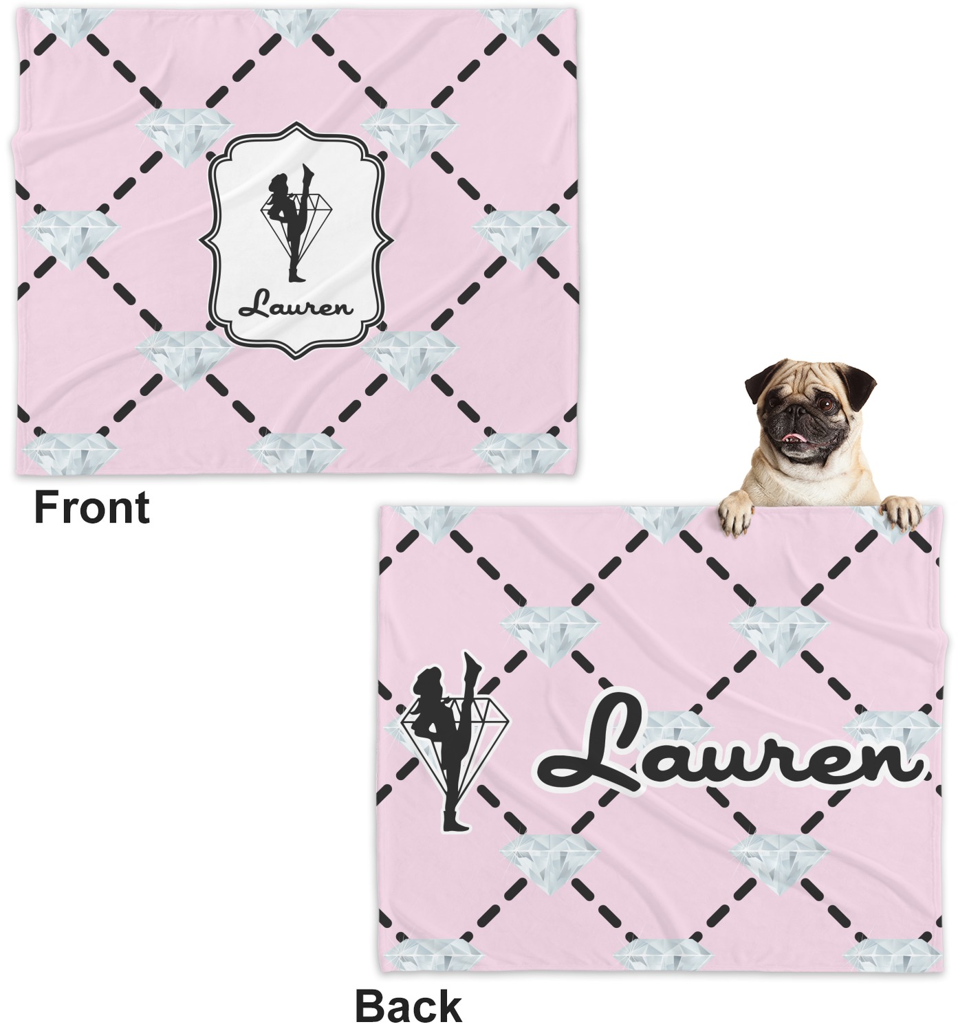 These dog blankets are crafted from a gentle, soft-to-the-touch, minky material. We print your customizations, either matching or differing, on both the top and underside of the blanket. These personalized dog blankets are available in two sizes: regular and large. Our regular size, at 40" x 30", accommodates small and some medium size dogs. At 60" x 50", our large dog blanket is a better fit for bigger breeds. Though specialized for dogs, these blankets still make a thoughtful gift for your favorite feline, or any other pet in mind!