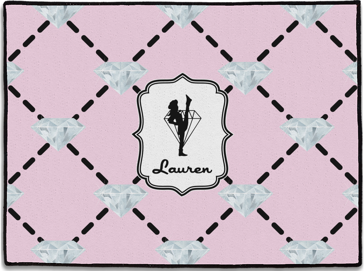 A beautiful decorative label showcases the silhouette of a dancer set inside a diamond personalized with the Diamond Drill team member's name.