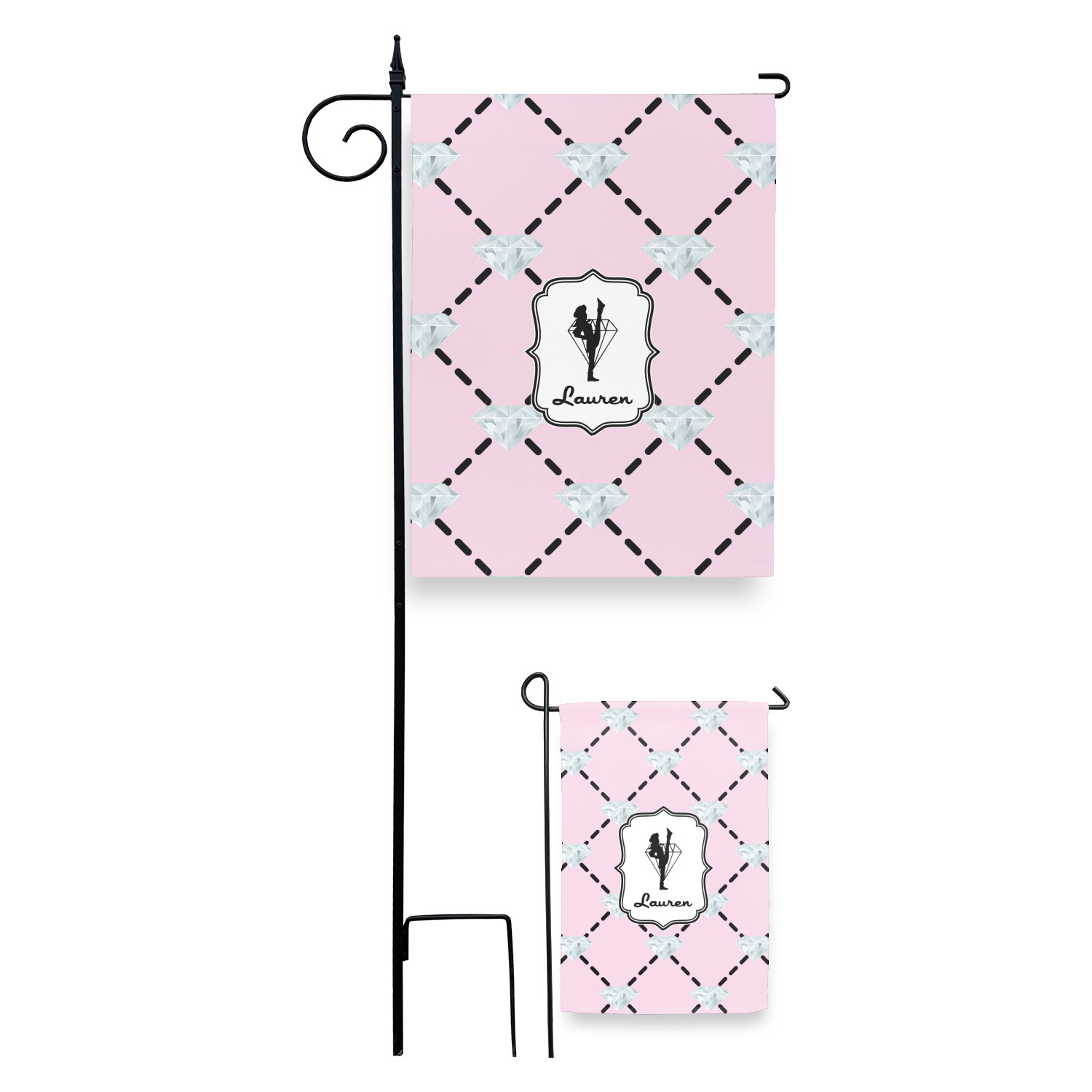 These custom garden flags are made of a durable, double-ply, polyester weave, allowing them to withstand the elements year round. The small flags measure at approximately 12 by 18 inches. The large flags measure out to 28 by 37 inches. You can order these decorative flags with your customization printed on the front only, or the front and back.