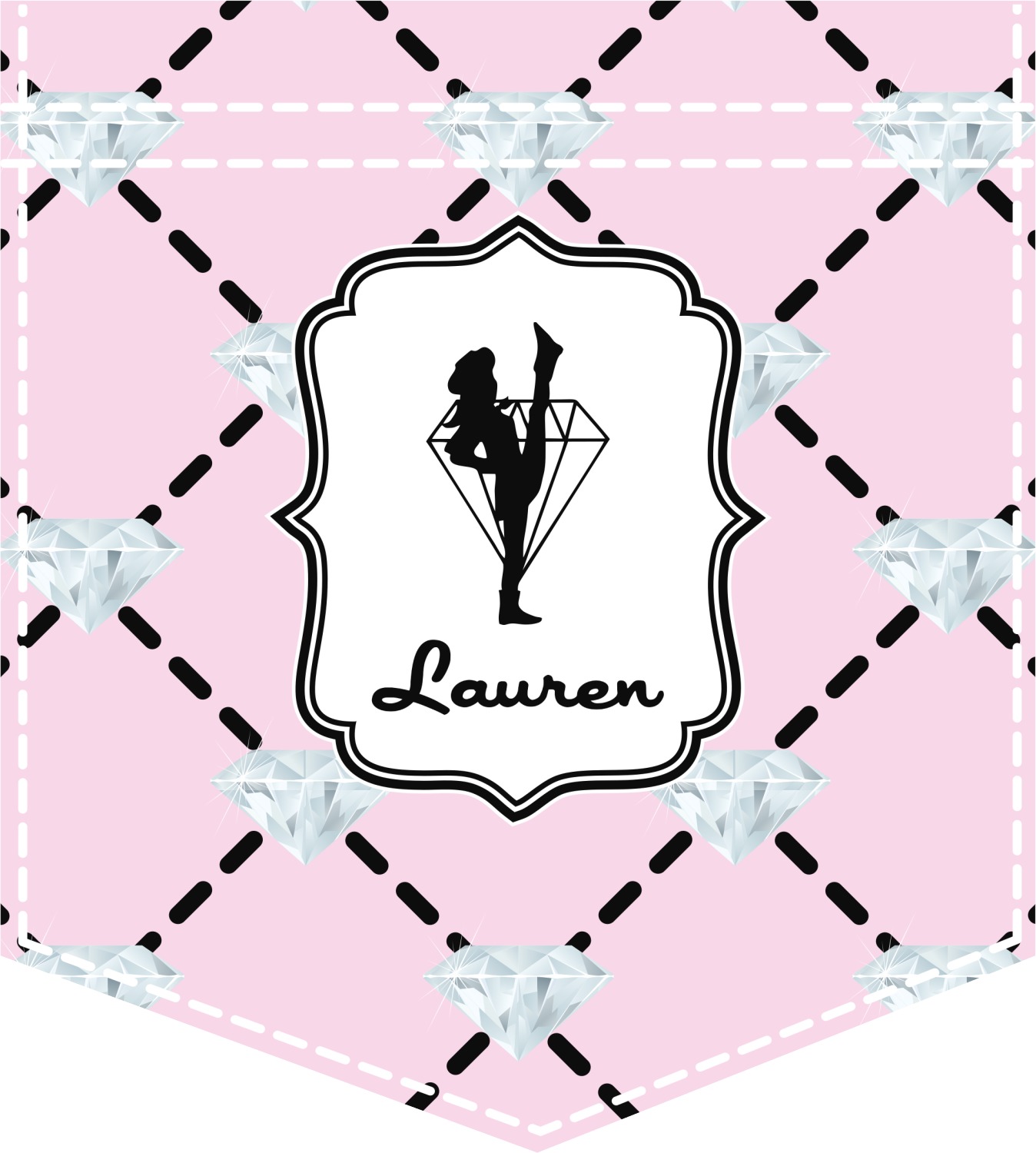 A beautiful decorative label showcases the silhouette of a dancer set inside a diamond personalized with the Diamond Drill team member's name.