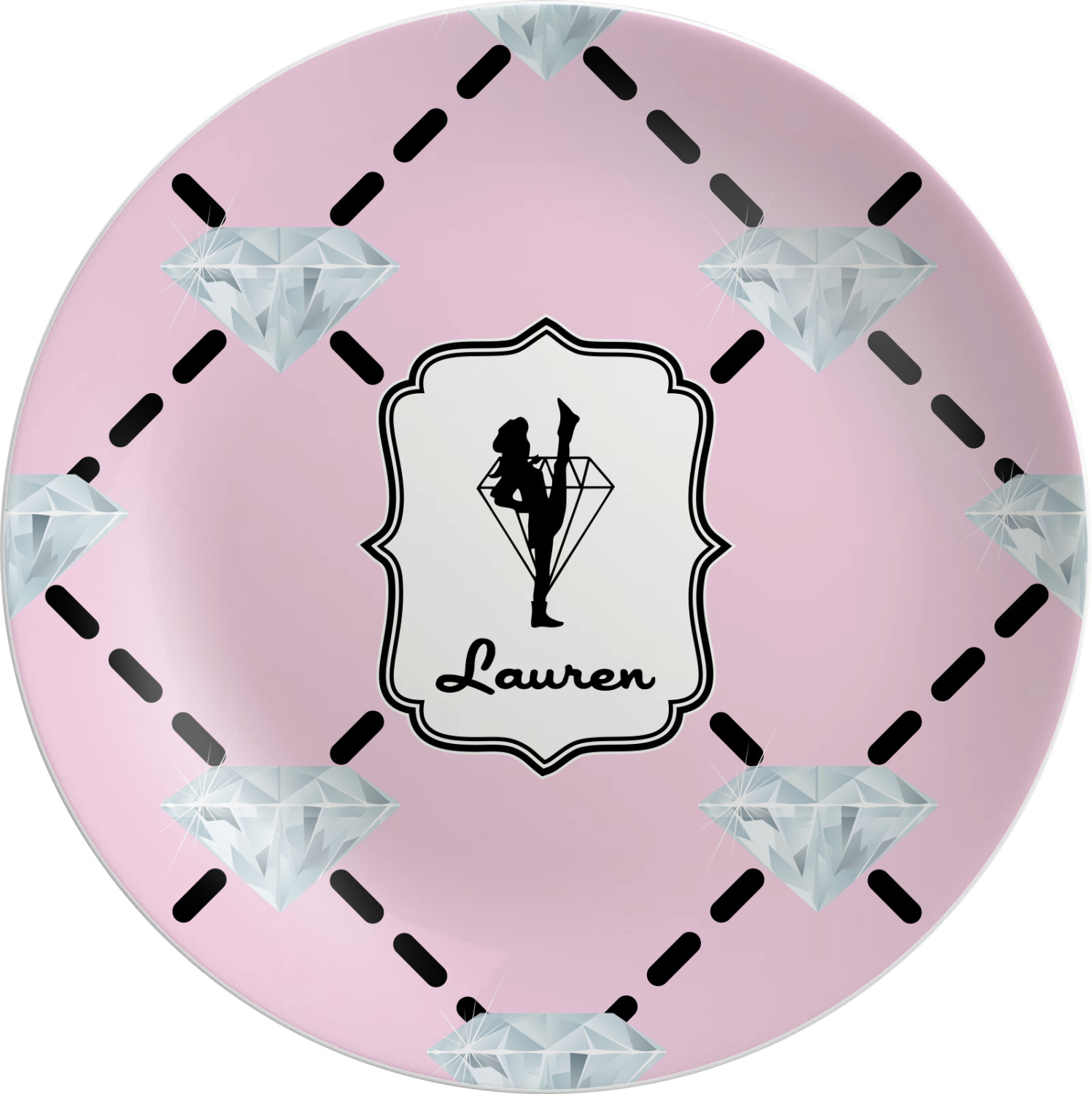 A beautiful decorative label showcases the silhouette of a dancer set inside a diamond personalized with the Diamond Drill team member's name.