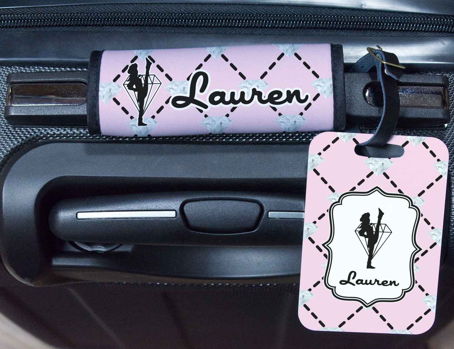 A beautiful decorative label showcases the silhouette of a dancer set inside a diamond personalized with the Diamond Drill team member's name.