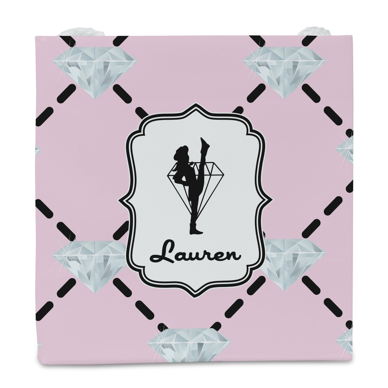 A beautiful decorative label showcases the silhouette of a dancer set inside a diamond personalized with the Diamond Drill team member's name.