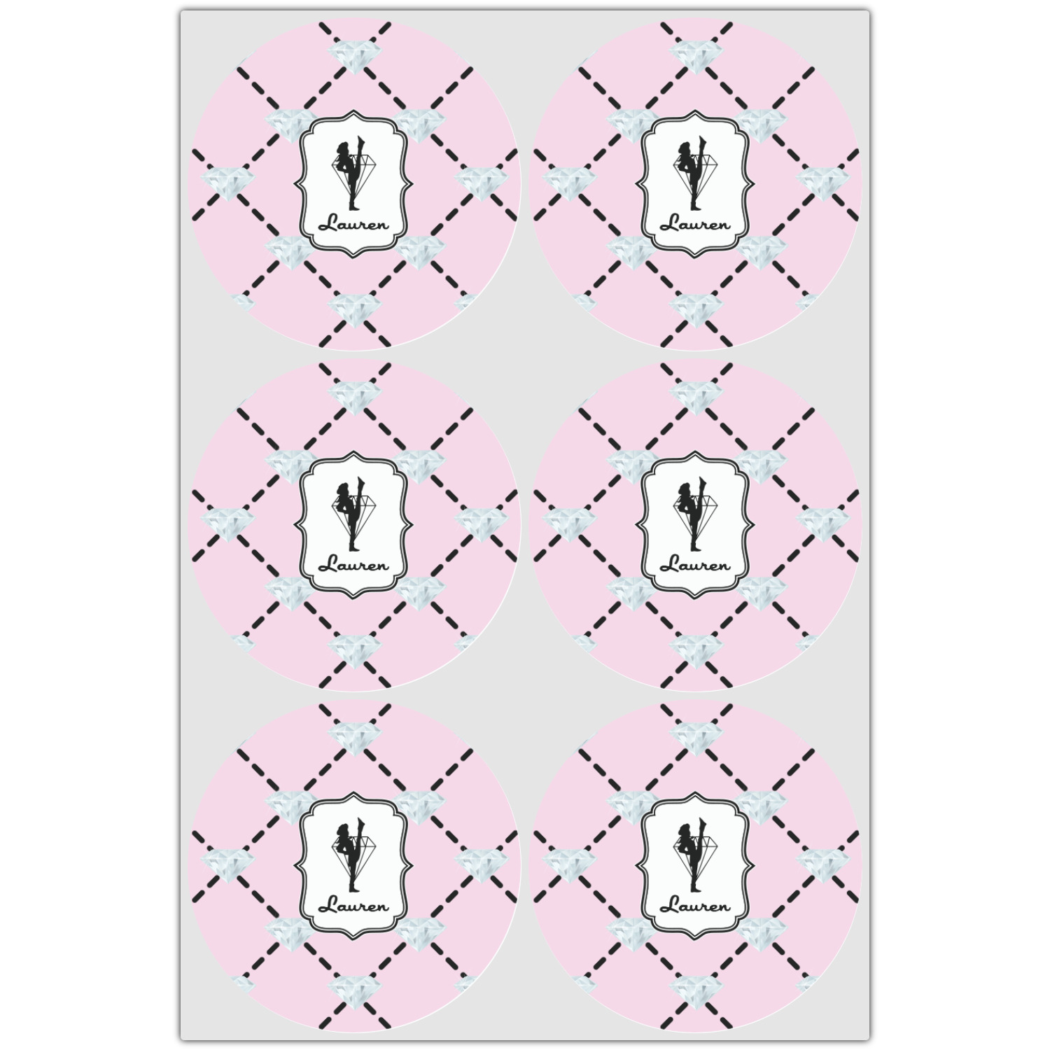 A beautiful decorative label showcases the silhouette of a dancer set inside a diamond personalized with the Diamond Drill team member's name.