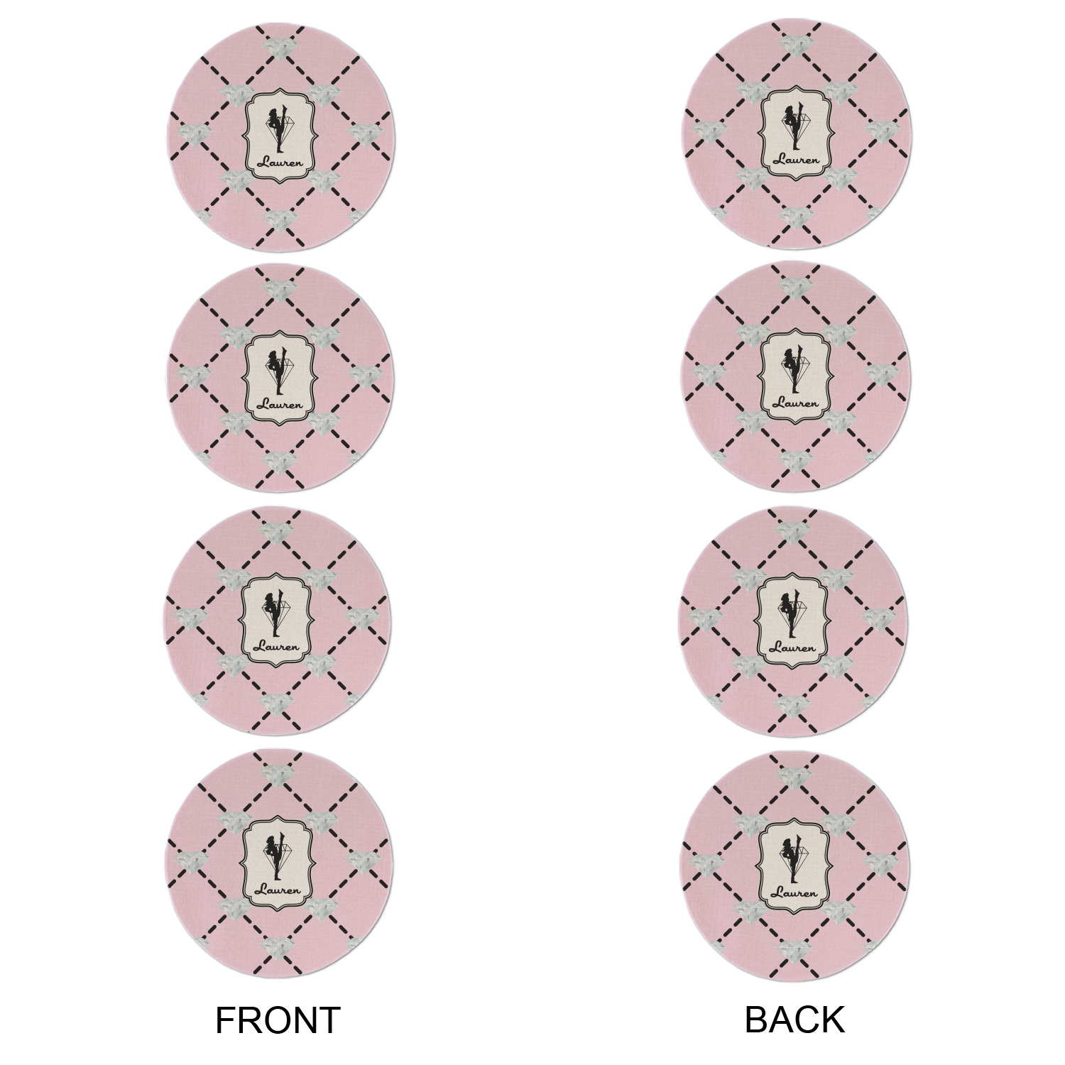 A beautiful decorative label showcases the silhouette of a dancer set inside a diamond personalized with the Diamond Drill team member's name.