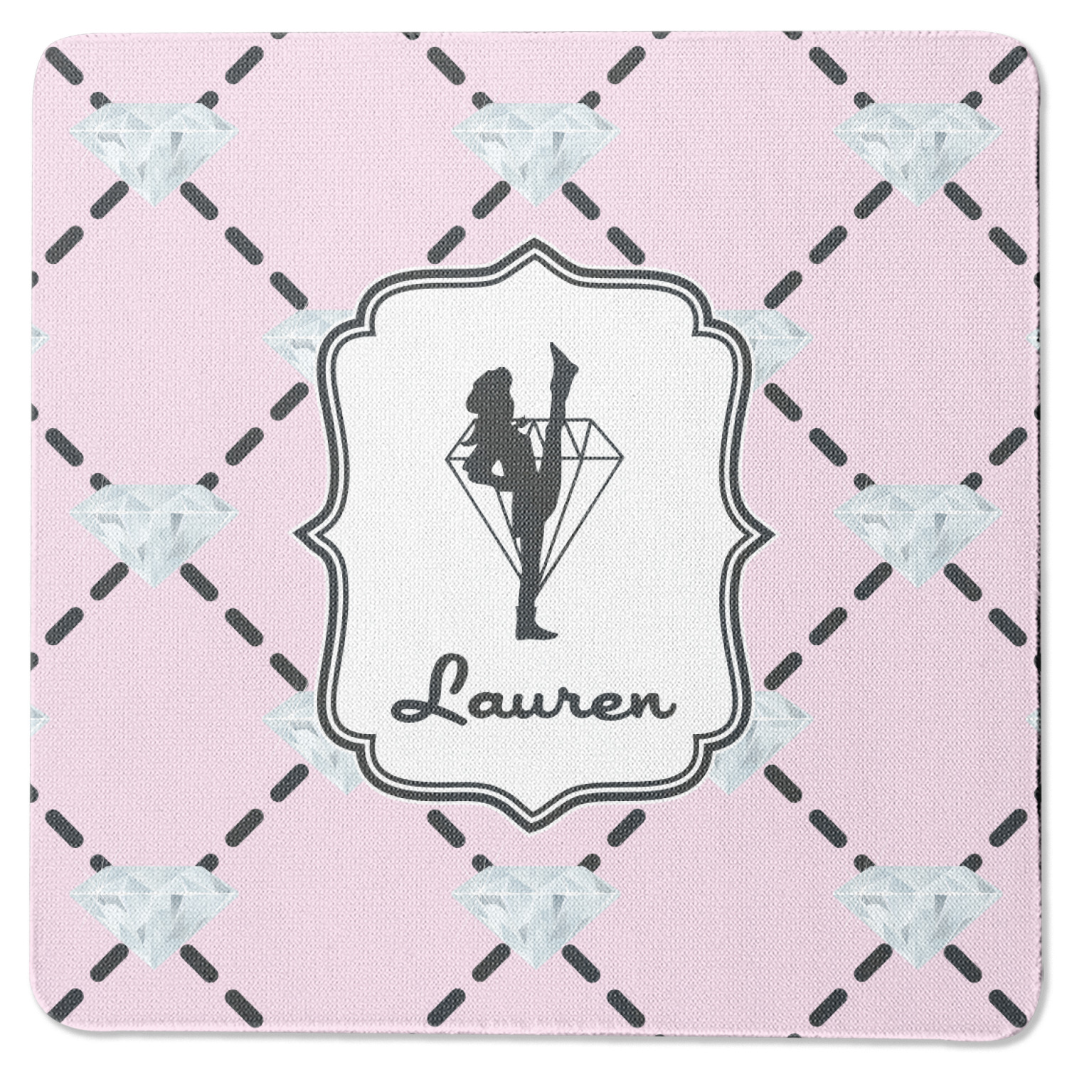A beautiful decorative label showcases the silhouette of a dancer set inside a diamond personalized with the Diamond Drill team member's name.