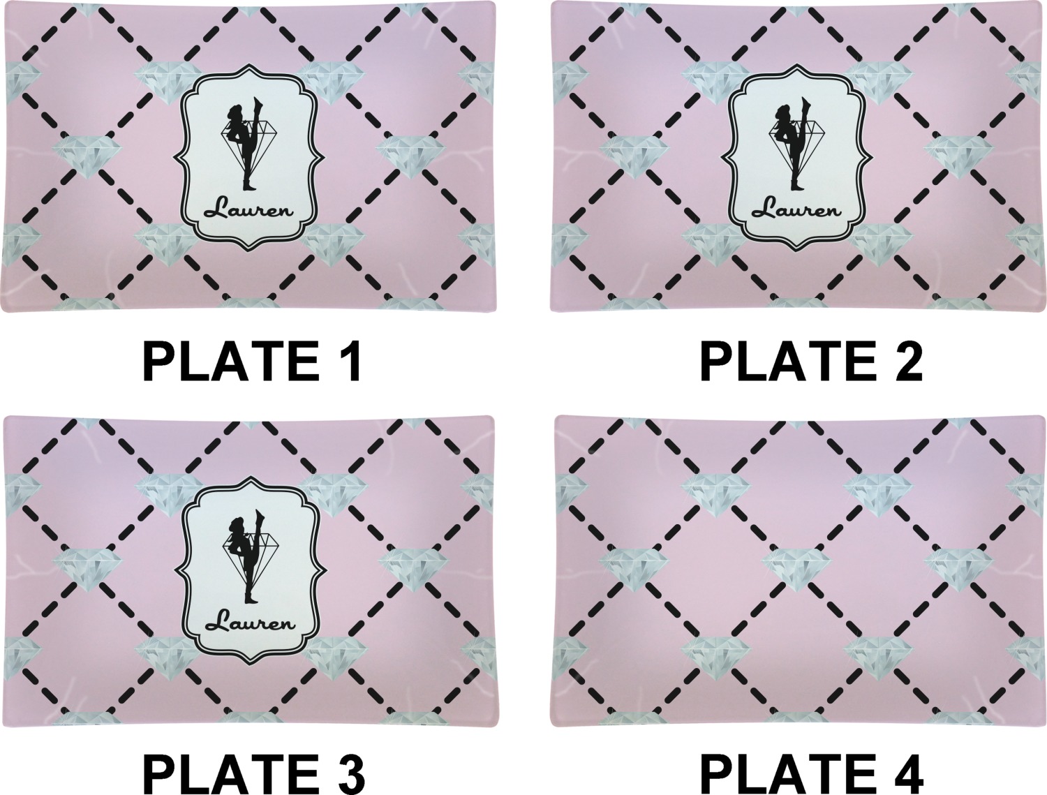 Diamond Designs for Glass Rectangular Lunch / Dinner Plates - Set of 4