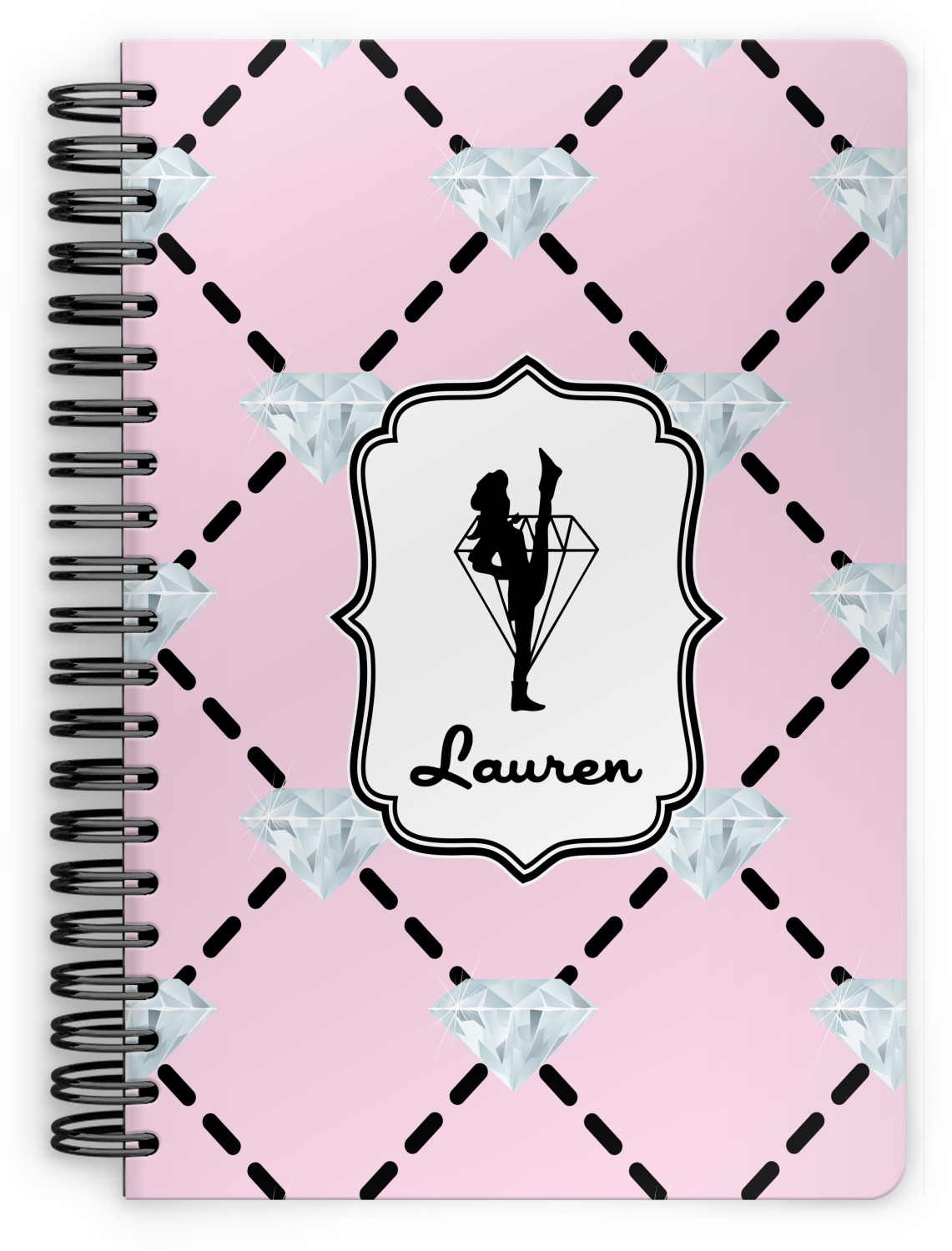 This spiral notebook includes 75 sheets of thick, ruled paper. The front and back of this custom notebook is made of a robust, laminate, plastic covering. We print your personalization on these two panels, underneath a glossy finish, which emphasizes the colors of your design. The two panels and the sheets of paper are held together by a sturdy, black coil. The paper within your bound notebook is perforated for easy, clean tearing.