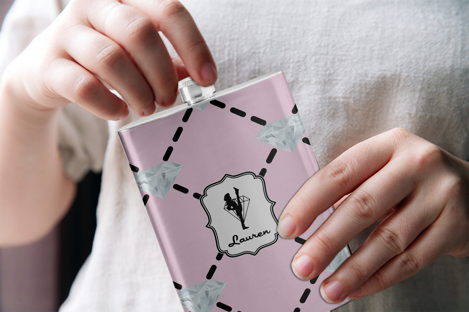 A beautiful decorative label showcases the silhouette of a dancer set inside a diamond personalized with the Diamond Drill team member's name.