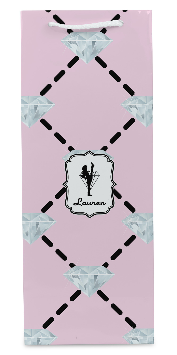 A beautiful decorative label showcases the silhouette of a dancer set inside a diamond personalized with the Diamond Drill team member's name.