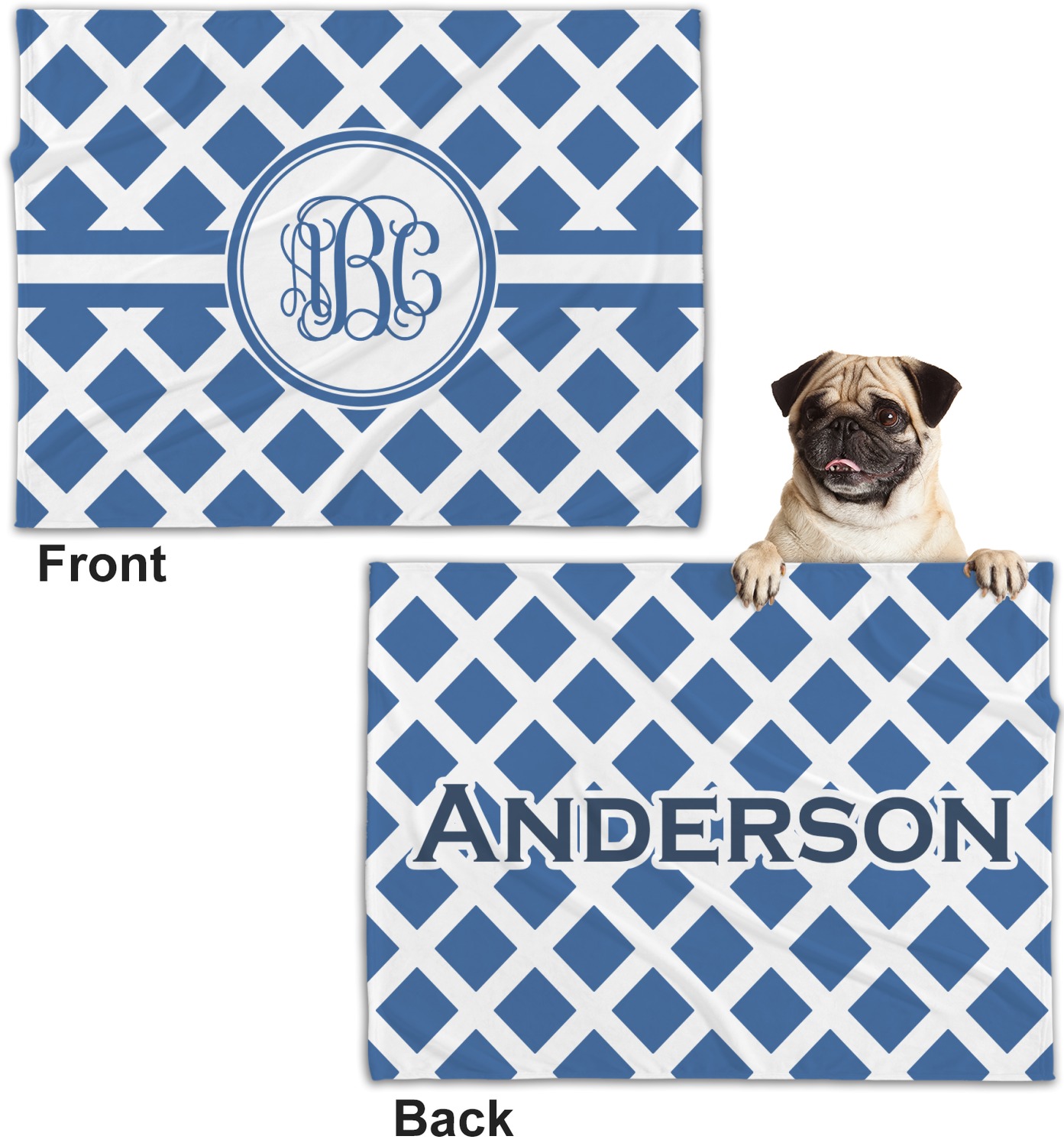 These dog blankets are crafted from a gentle, soft-to-the-touch, minky material. We print your customizations, either matching or differing, on both the top and underside of the blanket. These personalized dog blankets are available in two sizes: regular and large. Our regular size, at 40" x 30", accommodates small and some medium size dogs. At 60" x 50", our large dog blanket is a better fit for bigger breeds. Though specialized for dogs, these blankets still make a thoughtful gift for your favorite feline, or any other pet in mind!