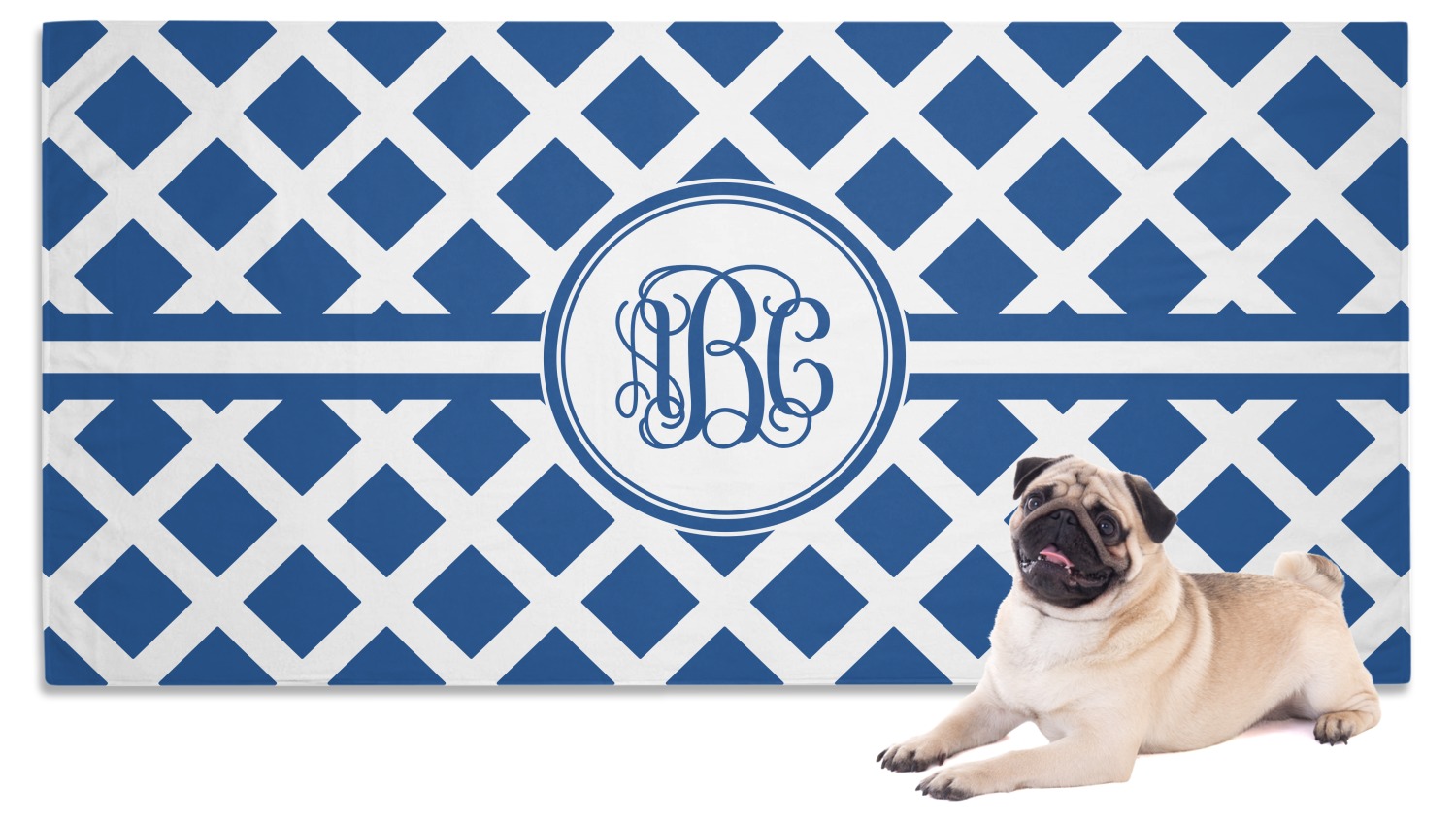 Our custom towels are crafted from a special blend of polyester and polyamide, which contributes to its lightweight, yet thoroughly absorbent nature. We craft it as such to guarantee efficiency as a convenient product; its lightweight nature makes it easy to roll up and carry along, yet it is still able to dry off even the wettest, muddiest pet. It measures at 60" x 30" and is sizable enough to dry off even the largest of pets. With our towel's gentle, soft-to-the-touch material, your pet will be sure to anticipate its warm, dry embrace. We print your personalized design on the front of the towel, while the back is white.