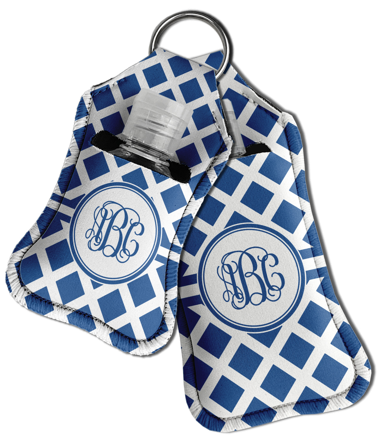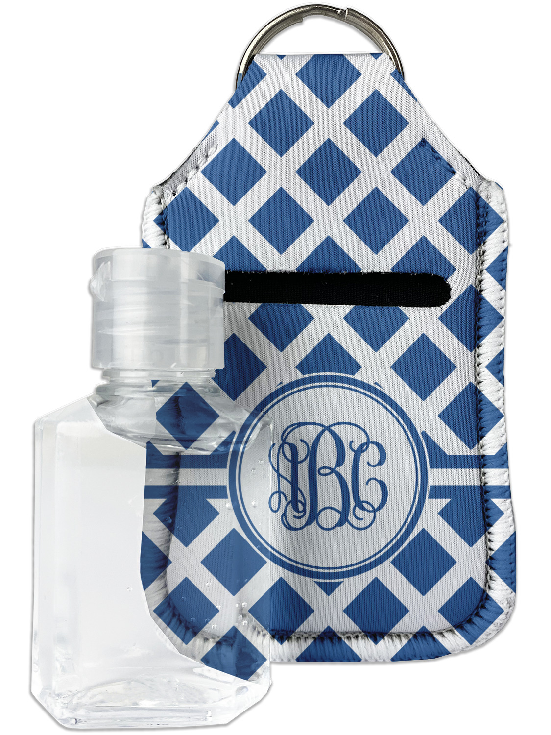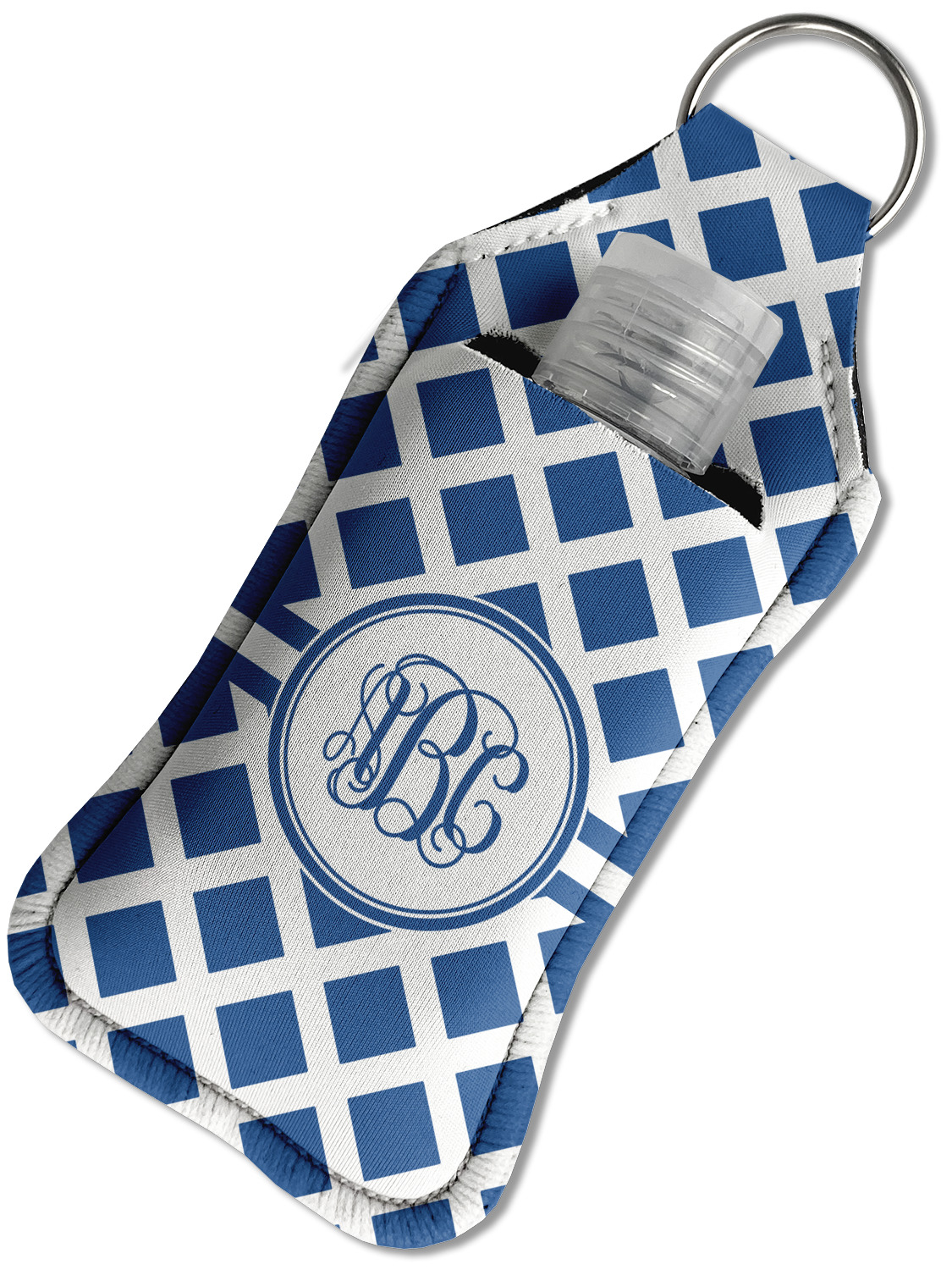 Each hand sanitizer holder comes with its own empty travel-sized, refillable hand sanitizer sure to fit snug in your customized sanitizer case! Our hand sanitizer cases are a durable, yet soft neoprene material sure to last any daily activities or travel agenda. Customize and personalize a hand sanitizer bottle holder with one of our two sizes - small (4.25" x 2.25") or large (5.5" x 2.5"). Each travel sanitizer holder comes with a keyring for attachment on bags, keys, or more!