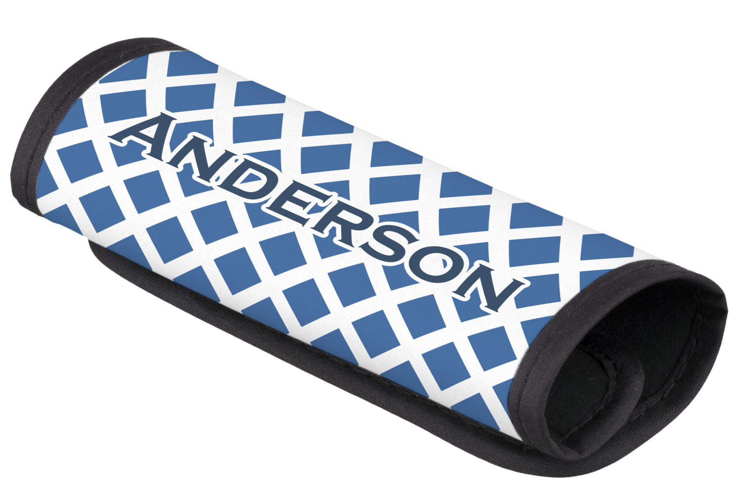 The luggage handle covers are made of neoprene with black trim and have Velcro closure to snugly fit around the handle. Your design is printed on the neoprene. The covers measure approx 5"x6".