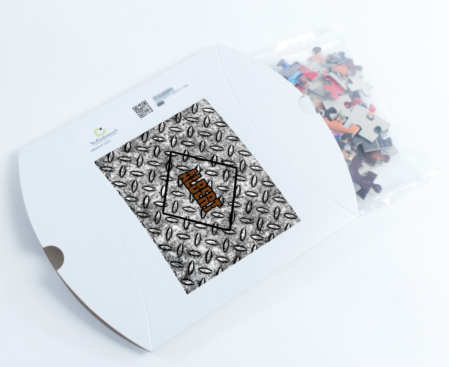 You can also upload your logo or art that you or your kids drew. To create more challenging jigsaw puzzles, you can create a pattern from with your logo or artwork. You can also add other elements such as text or personalization.