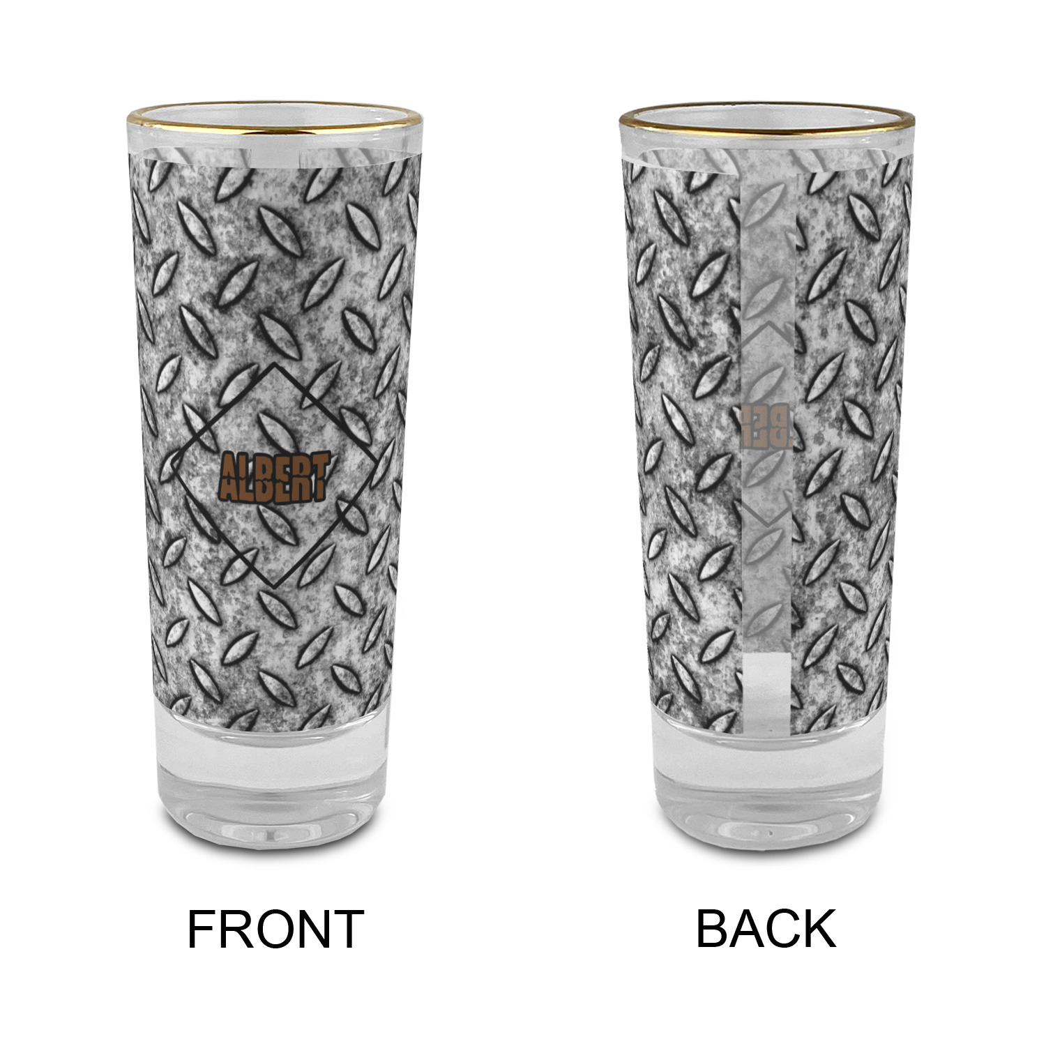 These glass shooter glasses are printed in full color with the design of your choice. These are a tall shooter 2 oz size and stand 4" tall. The print is a full wrap design to boldly display your personalization.