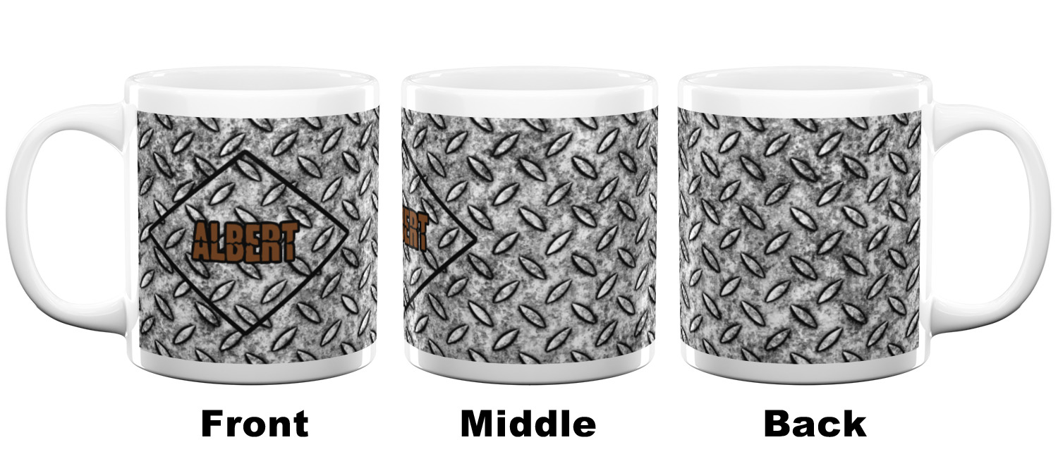 The design idea features a grungy diamond plate as the background. A diamond frame is the focal point of this design idea with your personalization in a grungy font. Nothing could get more manly than this.
