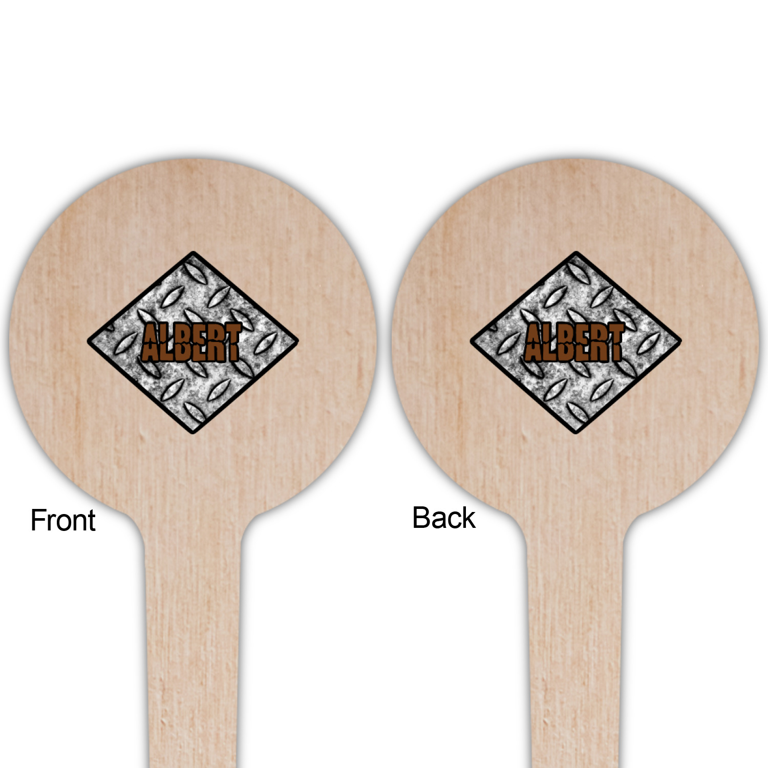 The design idea features a grungy diamond plate as the background. A diamond frame is the focal point of this design idea with your personalization in a grungy font. Nothing could get more manly than this.