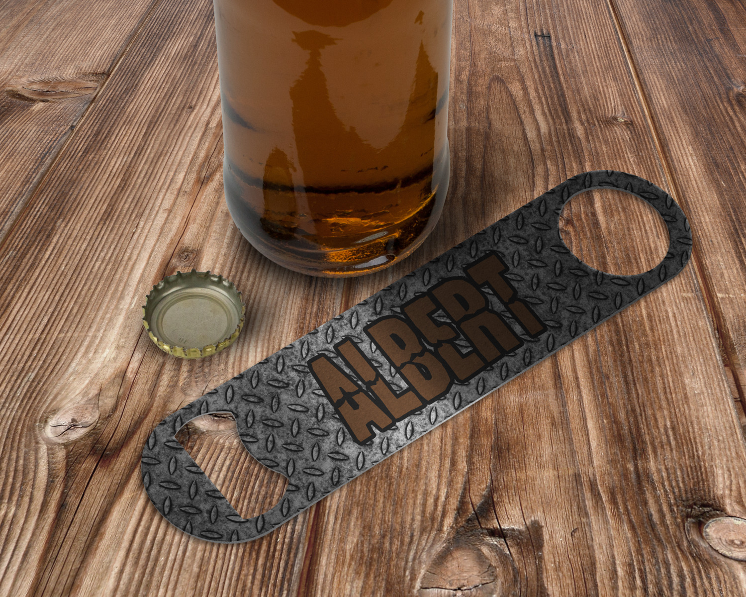 Stop struggling with the caps or your bottled beverages by purchasing one of our personalized bottle openers! These wrench-like custom bar blades are built to last. Customize one for your home's bar, or as a practical gift for a loved one!